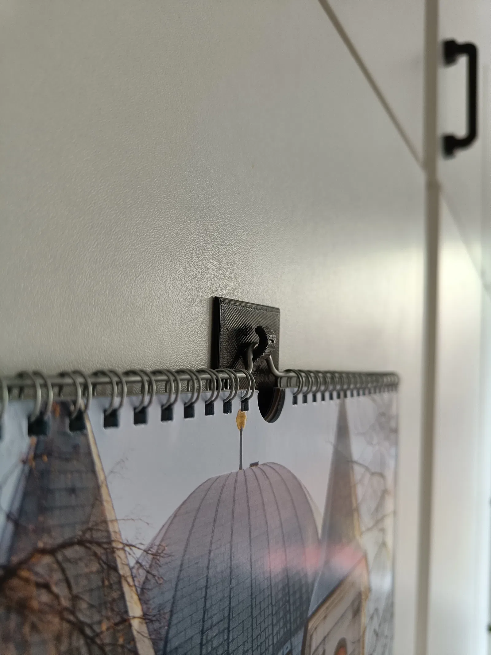 Cái móc treo này, y như tên gọi luôn, là để treo lịch đó. Gắn vô tường hay chỗ nào cũng được bằng băng keo hai mặt. Nhớ lau sạch sẽ bề mặt trước khi dán cho chắc ăn nghen.
