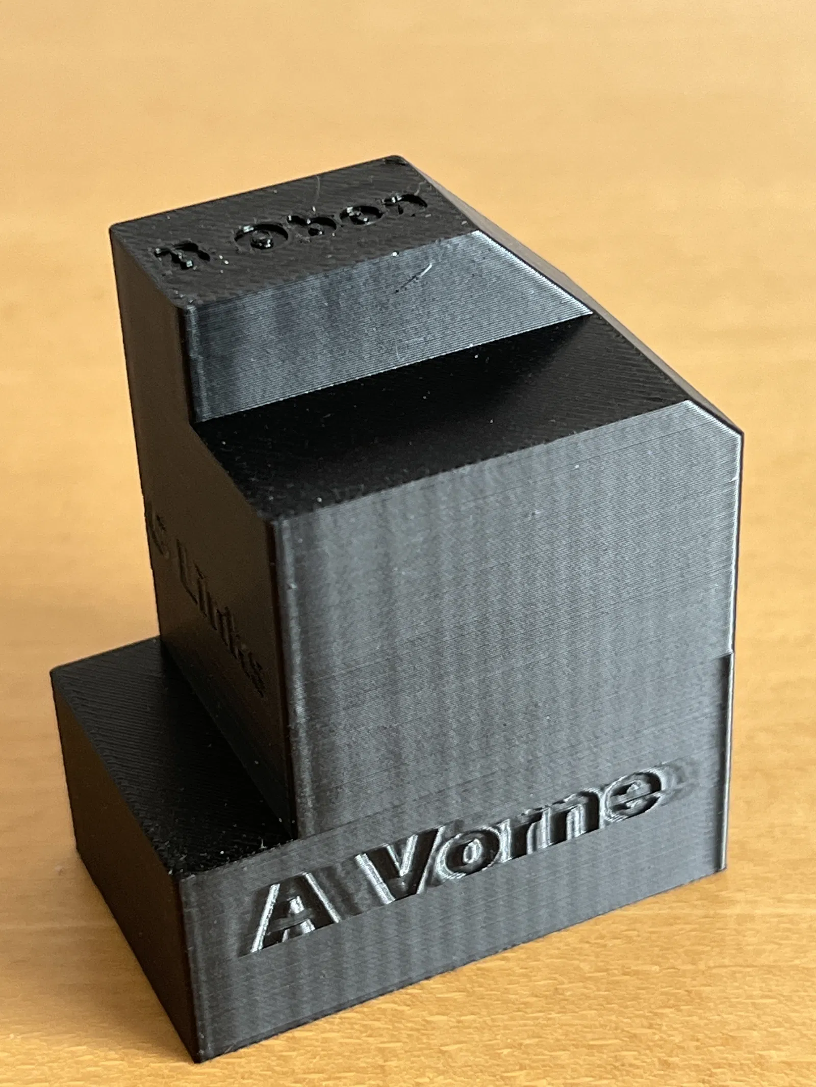 Mô hình này dùng để hình dung Phương pháp chiếu 1. Tất cả các bề mặt đều được dán nhãn. Hoàn hảo để giải thích, đặc biệt hữu ích cho việc hướng dẫn học viên mới về cách đặt các hình chiếu.