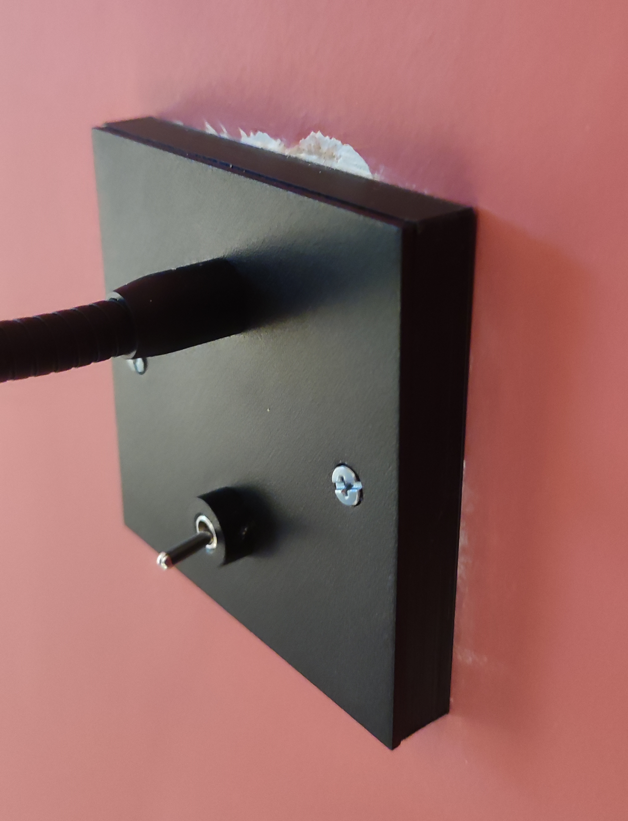 Tấm gắn tường giải quyết cả hai vấn đề bằng cách cung cấp sự hỗ trợ cho mặt lưng và có một cạnh ngoài cho phép mép của hộp điện âm tường nằm gọn bên trong tấm gắn.
