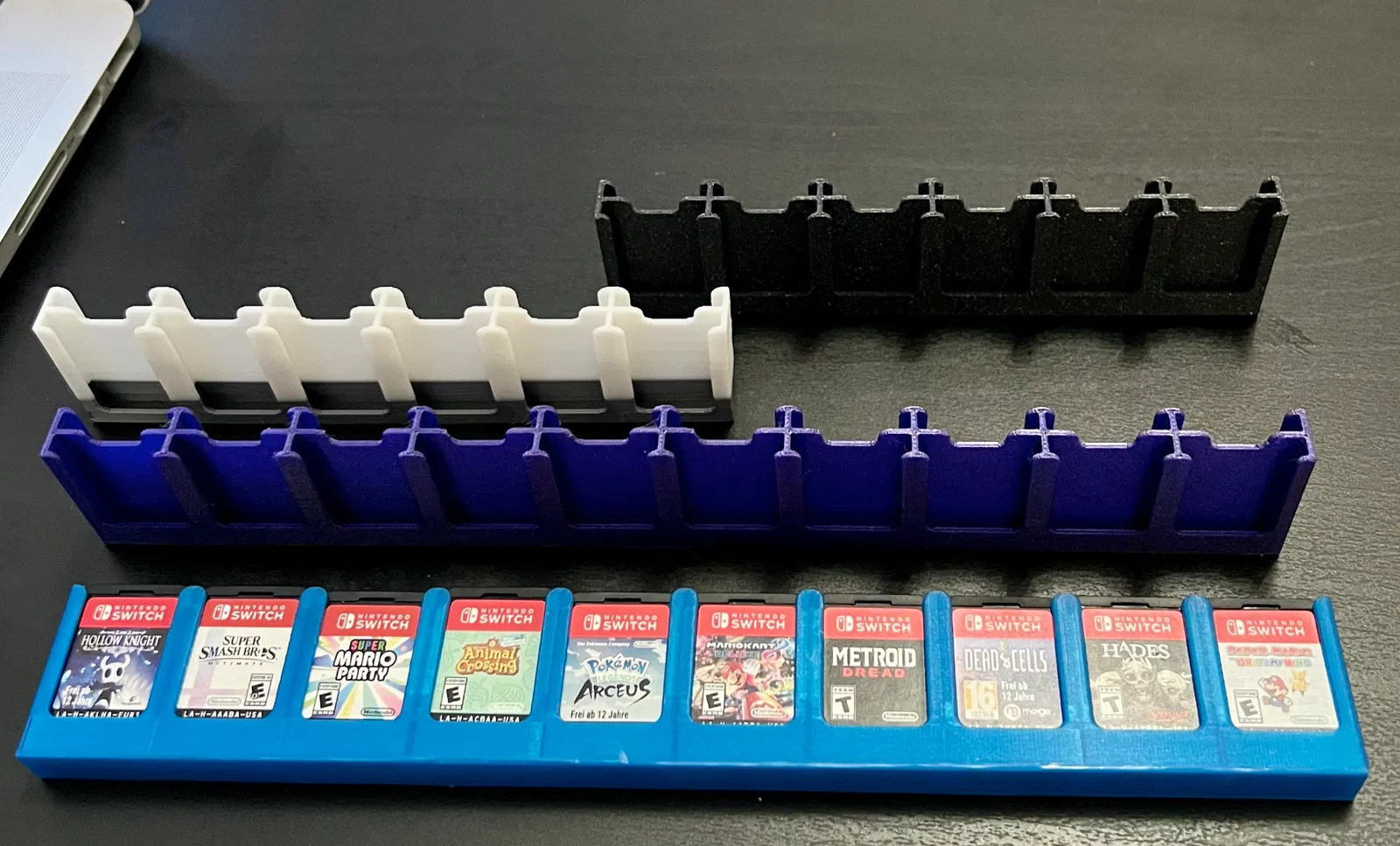 Giá đỡ đĩa game Nintendo Switch có thể tùy chỉnh thông số. Bạn có thể dễ dàng thay đổi số lượng khe cắm và kích thước cho phù hợp với nhu cầu sử dụng của mình. File Fusion 360 được cung cấp sẵn để bạn tự do chỉnh sửa.