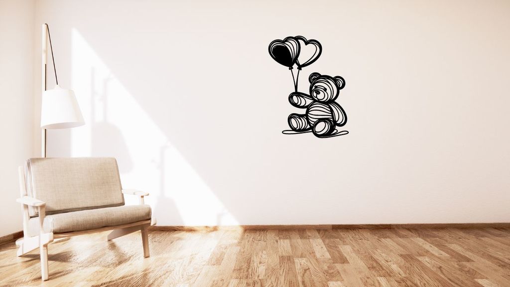 Tranh vẽ tối giản tuyệt đẹp về gấu Teddy với những quả bóng bay treo trên tường.
