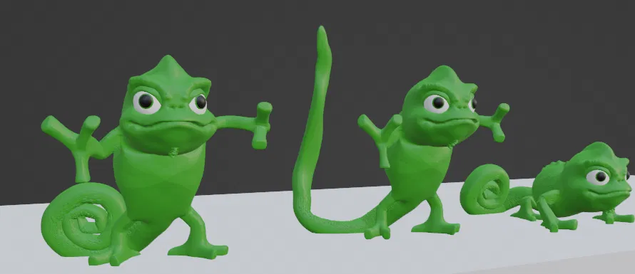 Pascal bị treo là lỗi in, nhưng phần mềm Prusa Slic3r có thể xử lý được. Mô hình này lấy cảm hứng từ nhân vật Tắc Kè Hoa trong bộ phim hoạt hình Tangled nổi tiếng, mang đến nét dễ thương và độc đáo cho bộ sưu tập của bạn.