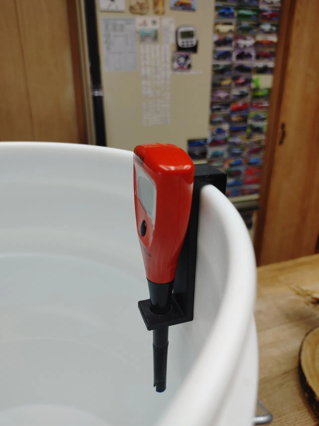 Một kẹp giữ đơn giản gắn vào thùng 5 gallon để giữ máy đo pH Hanna. Thiết kế phù hợp với các loại máy Hanna Checker phổ biến. In bằng PLA hoặc PETG cho độ bền cao.