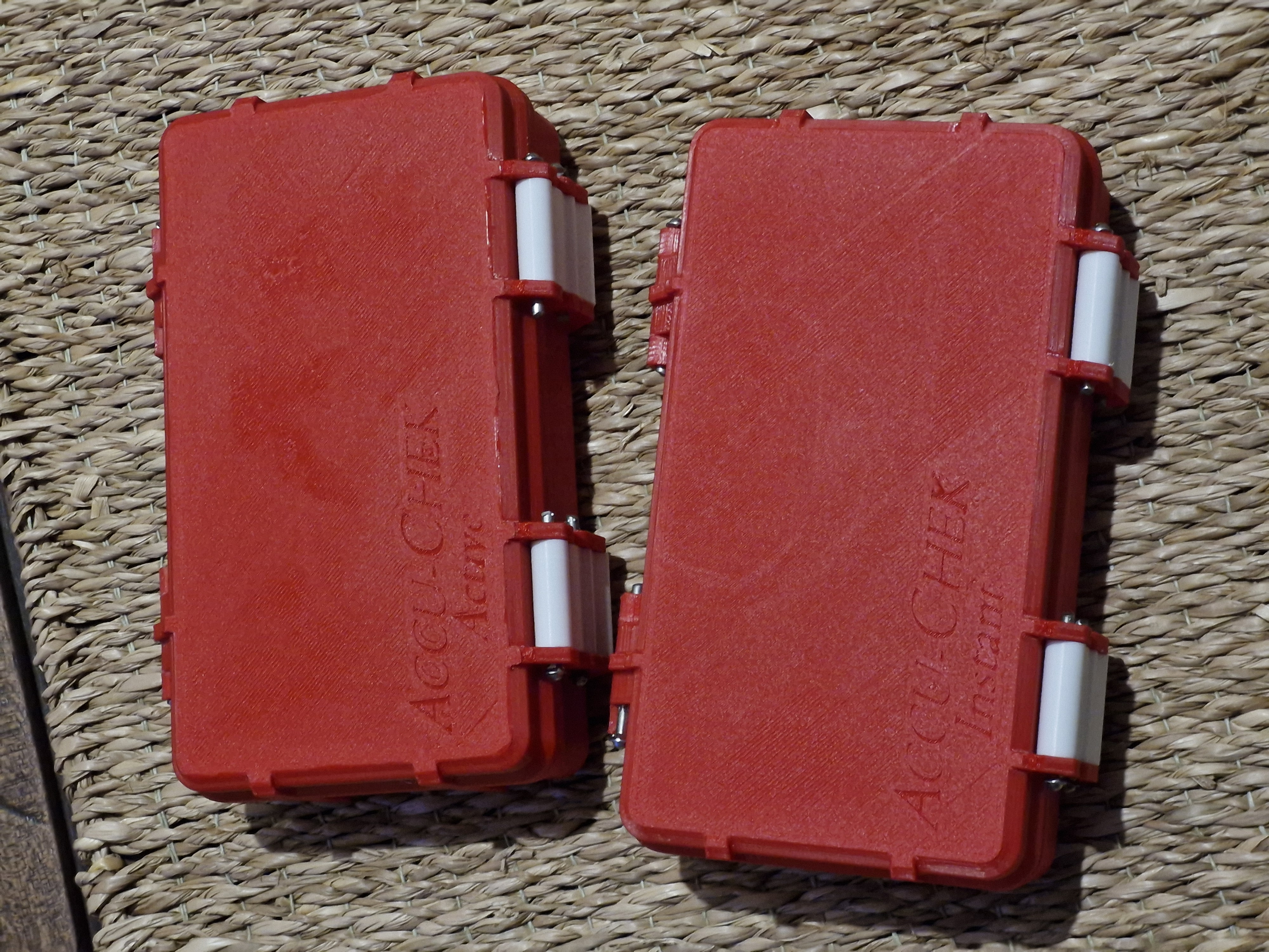 Hộp bảo vệ kèm đế in cho máy đo đường huyết Accu-Chek Instant hoặc Accu-Chek Active. Có chỗ cho máy, kim chích và que thử. Bao gồm 2 loại nắp và phần thân hộp được tùy chỉnh từ Rugged Box. Sử dụng ốc M3x30 cho bản lề và chốt.