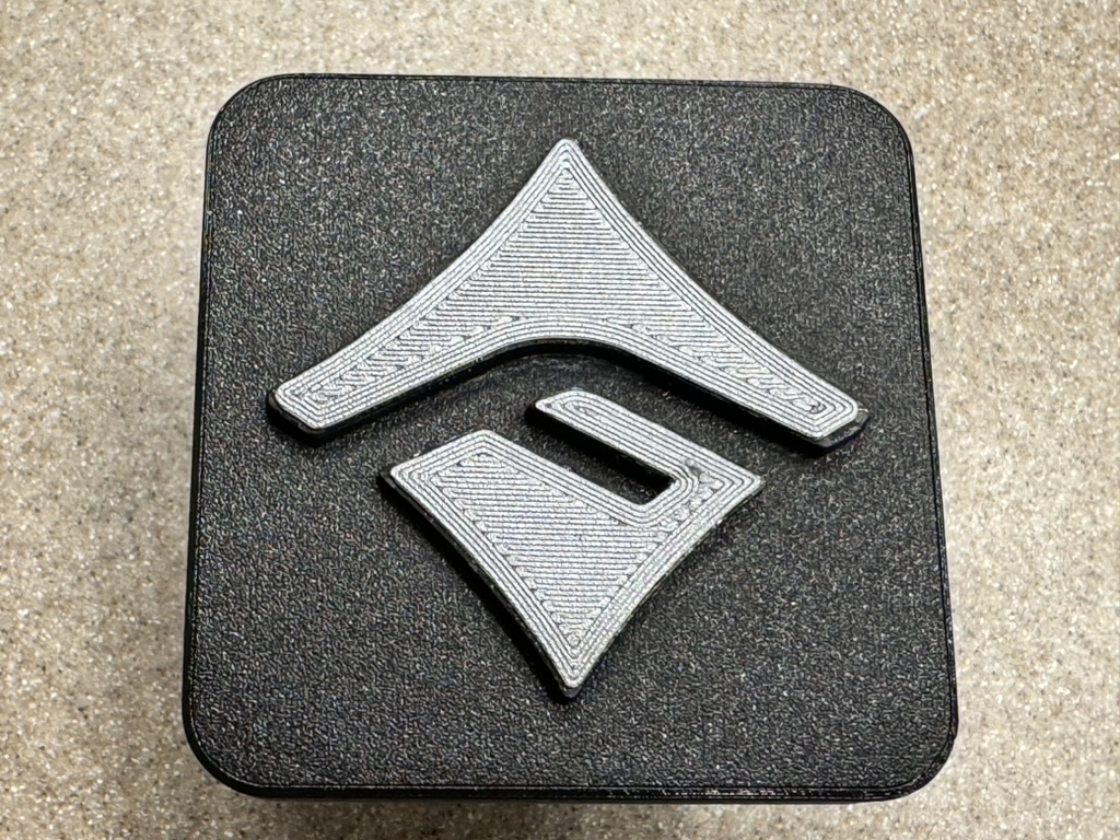 In nhựa TPU, độ đặc 30%, 3 lớp bao quanh. Nếu muốn in logo nhiều màu, hãy cắt phần logo ra khỏi đế gài trong slicer của bạn rồi thêm lệnh đổi màu sau 2-3 lớp đầu. Dán logo lên đế gài – các chi tiết chỉ khớp với nhau theo một cách duy nhất. Mẫu này in không cần đế đỡ, mặc dù các cái lẫy sẽ đẹp hơn nếu có đế đỡ khít chỉ ở phần lẫy.