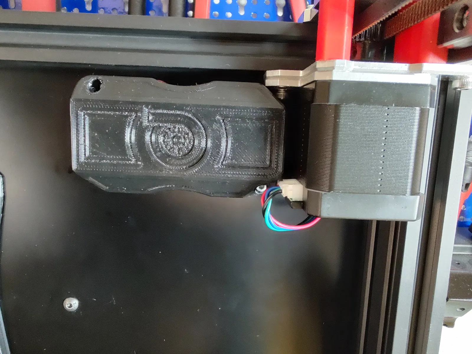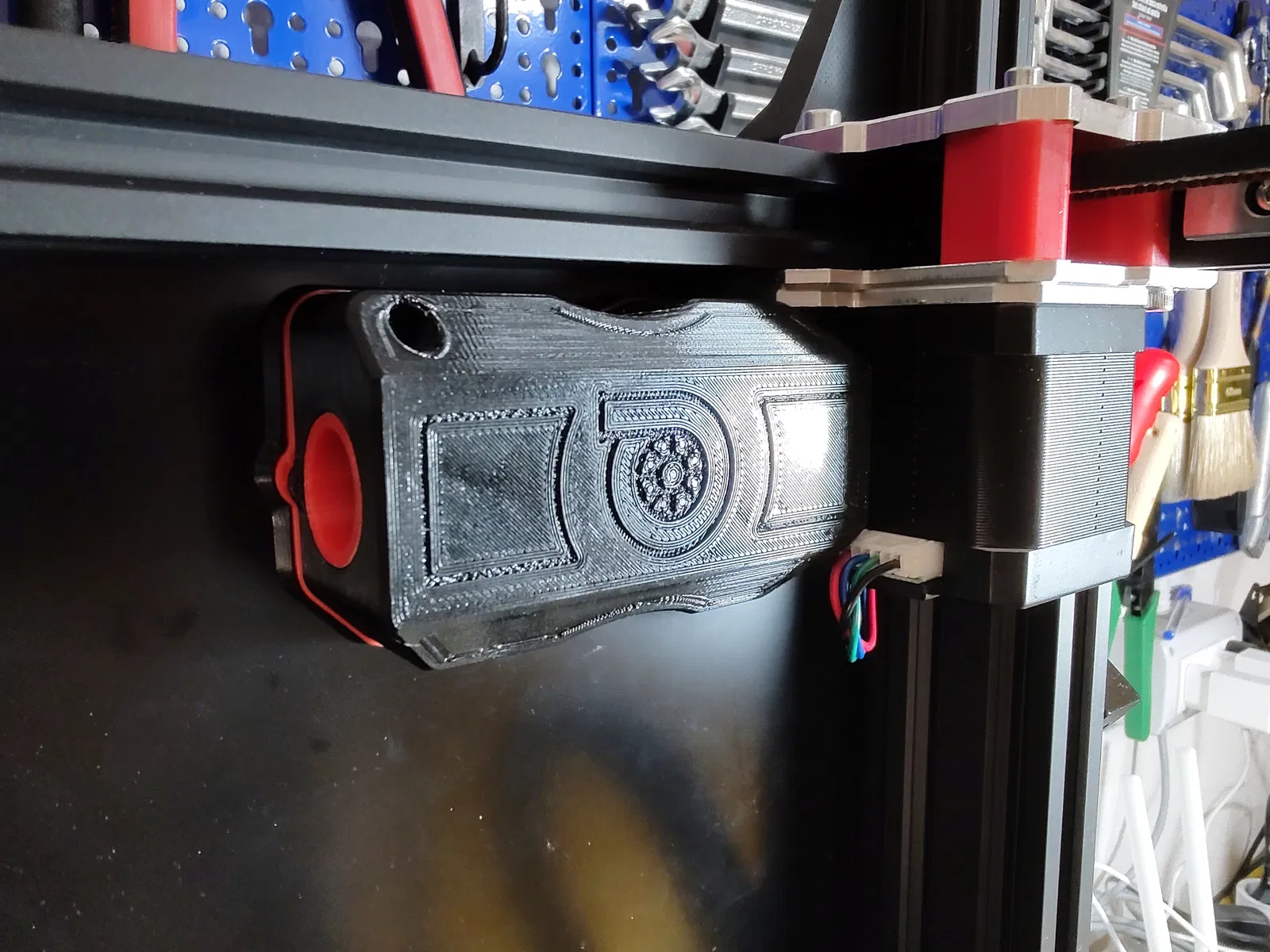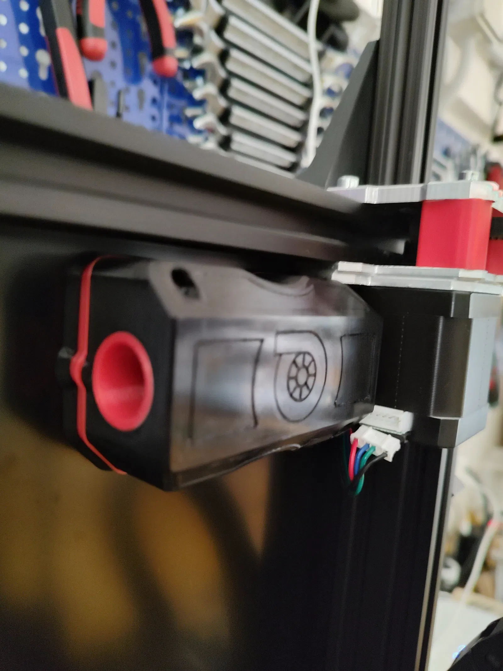 Đối với mấy bạn có trục động cơ bước quay vào trong, tui có làm thêm cái "Airbox" phần góc dưới bên trái hơi lõm vô để gắn trực tiếp luôn mà khỏi cần xoay động cơ. Còn nếu mấy bạn mà trục quay ra ngoài hoặc muốn xoay động cơ thì cứ xài bản gốc ha.