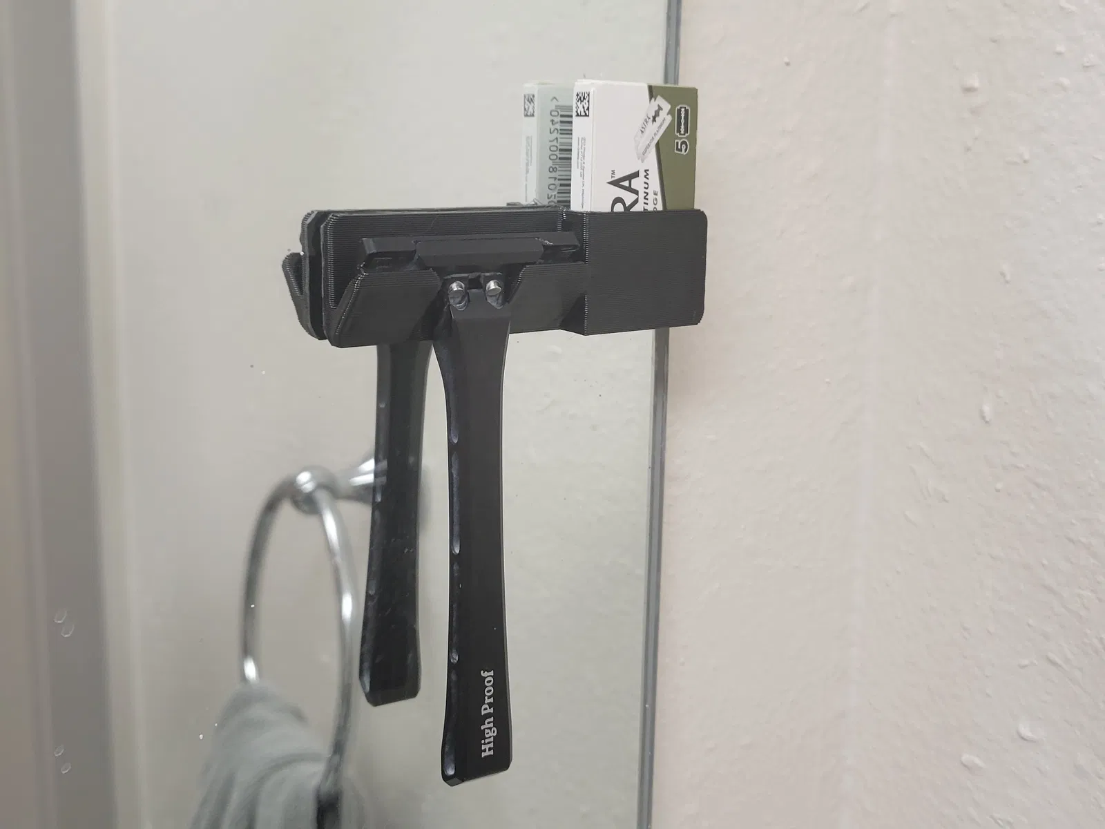 Giá đỡ gương cho Dao cạo High Proof và vỉ 5 lưỡi dao thay thế, gắn trực tiếp lên gương phòng tắm nhà bạn. Thiết kế tối ưu cho in 3D, chỉ cần giá đỡ từ mặt bàn in và dùng băng keo dán siêu dính để cố định.