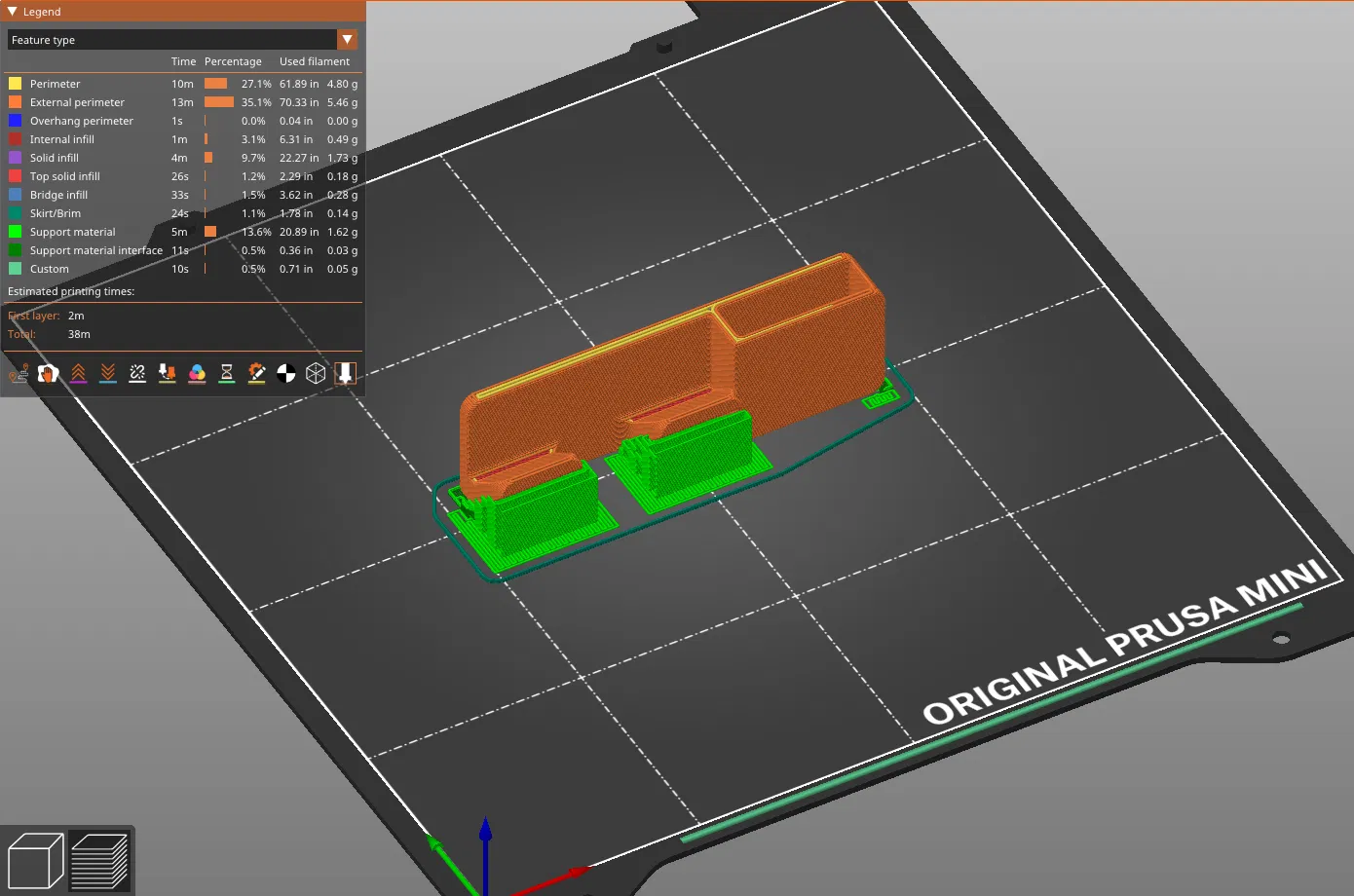 Thiết kế này nên được in theo hướng được hiển thị với giá đỡ chỉ từ mặt bàn in và được thiết kế để gắn bằng một dải băng keo dán siêu dính 2 mặt Scotch loại rộng 1 inch.