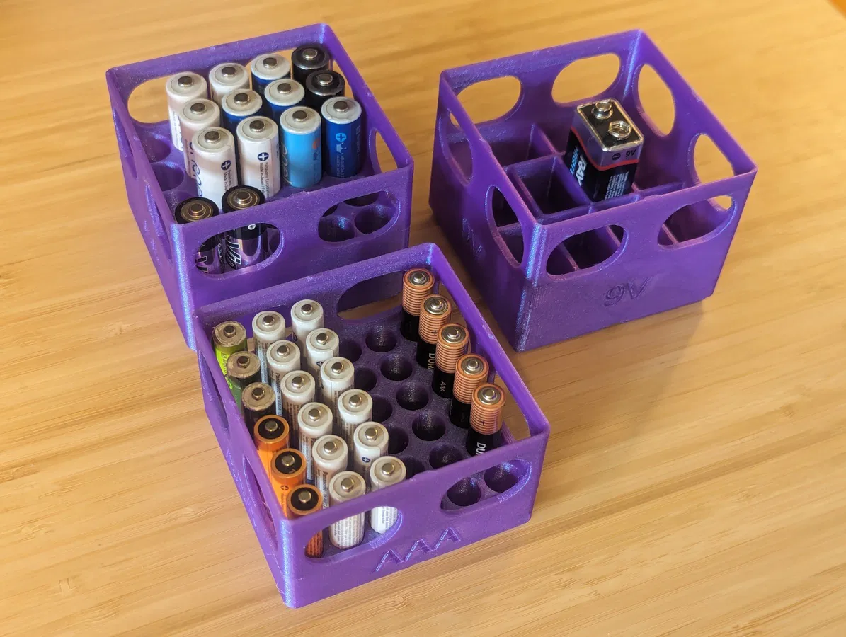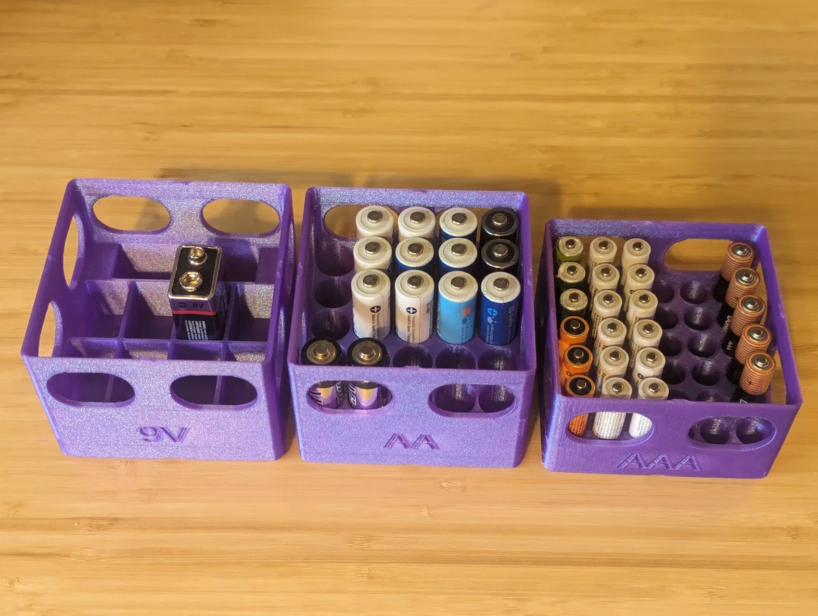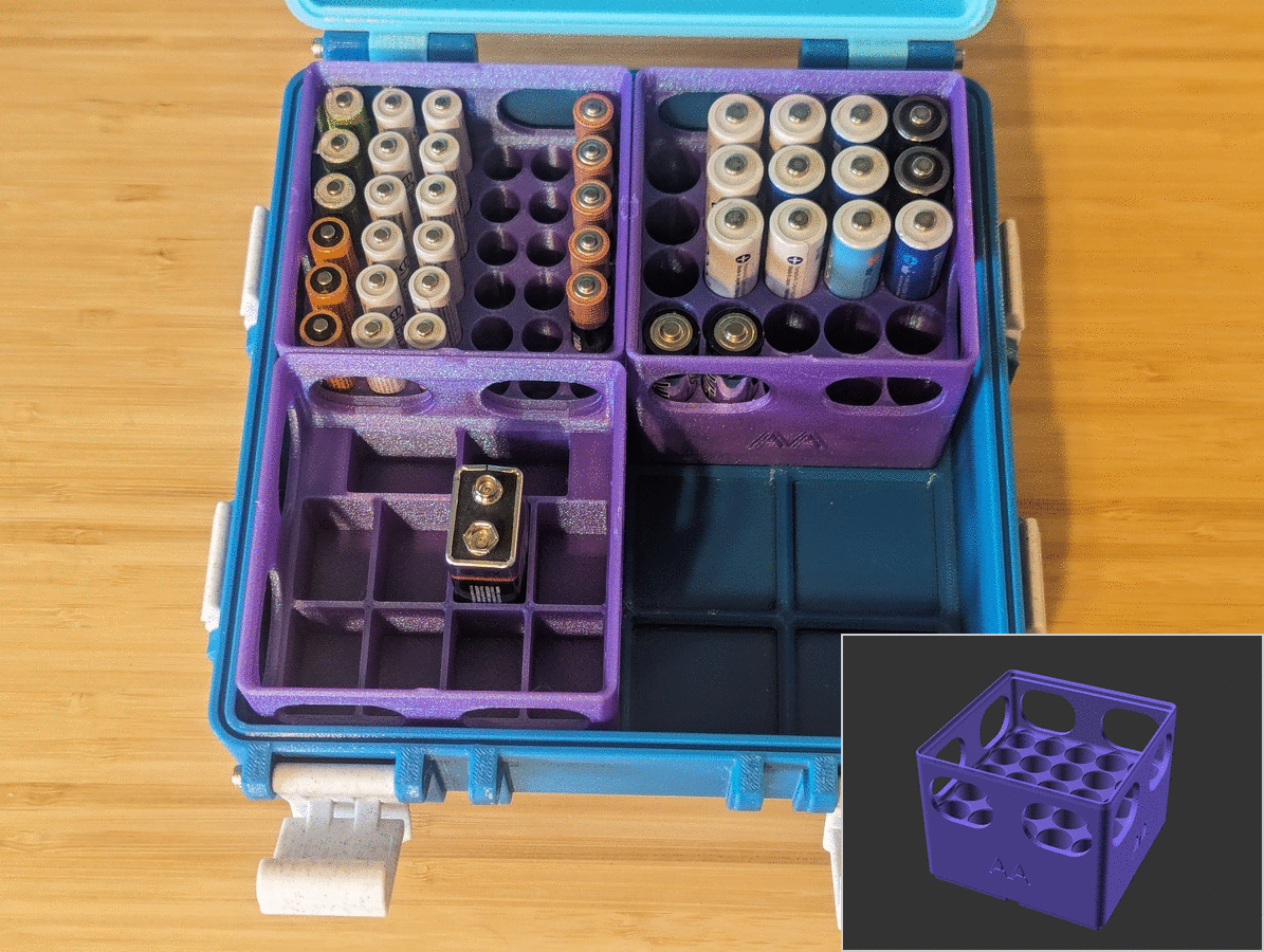 Phiên bản chỉnh sửa của các hộp đựng pin Gridfinity cho pin AA, AAA và 9V, được tùy chỉnh bằng OpenSCAD. Lý tưởng cho việc sắp xếp pin gọn gàng và dễ dàng lấy ra.