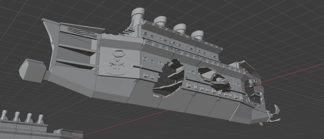 Tui đang làm mấy món cho bể cá, nay tui làm thêm cái mô hình tàu bị đắm. Anh em cứ tải file Obj. về tự cắt cho hợp với máy in nha. File gcode tui đưa là cho máy tui thôi đó.