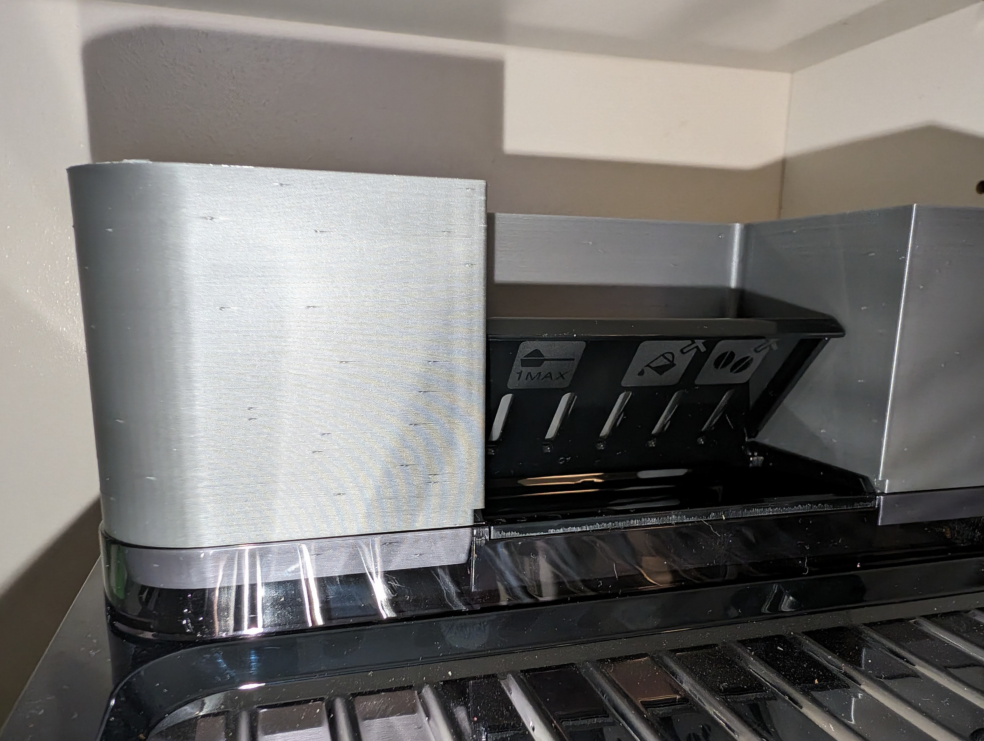 Cần mở rộng dung tích hộp đựng hạt cà phê cho máy Delonghi Eletta Explore? Mẫu in 3D này giúp bạn, giữ hạt chắc chắn và có tùy chọn gia cố thêm bằng băng dính để tránh đổ vãi.