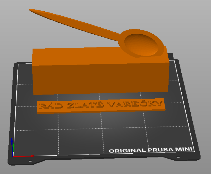 Mô hình Huân Chương Muỗng Vàng. Chữ và đế muỗng in riêng. Khuyến khích in đế bằng màu tối và muỗng cùng chữ bằng màu vàng. Sau đó dán chữ lên mô hình bằng keo siêu dính hoặc băng keo hai mặt.