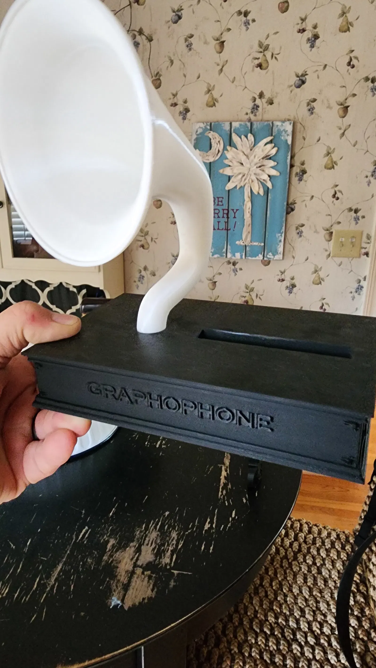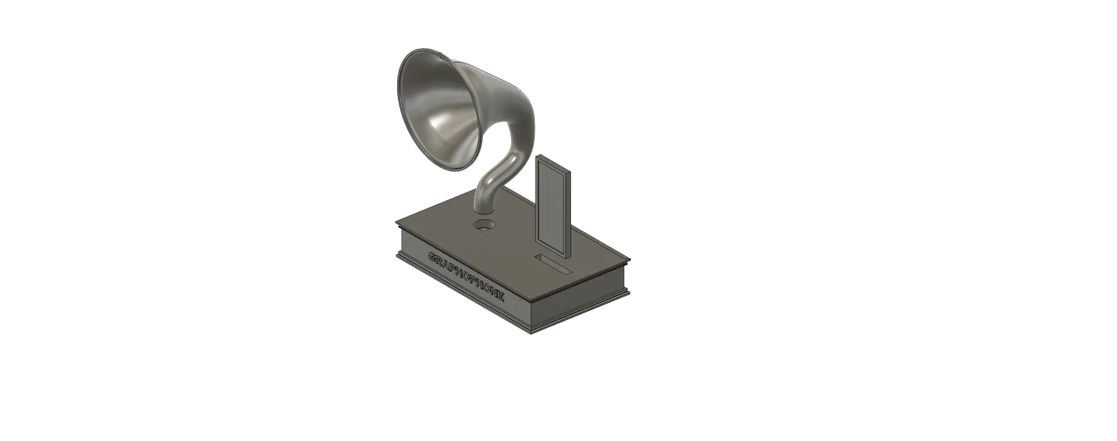 Tui bắt đầu tự làm cái này sau khi thấy cái tương tự bên Tàu. Tui hổng có chắc cái của họ làm có tốt hông hay là làm kiểu gì. Nên tui quyết định tự thử nghiệm với cái thiết kế graphophone của tui, vẽ bằng Fusion 360. Cái này vẫn còn đang thử nghiệm nhưng tui muốn chia sẻ lỡ ai có ý tưởng gì hay ho giúp nó tốt hơn. Hiện tại thì nó có khuếch đại âm thanh đó nhưng mà nó chỉ theo một hướng và hơi bị chói tiếng tí xíu. Cái âm sắc có thể chỉnh được bằng cách làm cái loa kèn dày hơn hoặc có thể là xài loại nhựa khác.