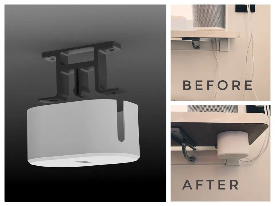Một dụng cụ tiện lợi để giấu đi những sợi dây cáp dài, giúp không gian của bạn gọn gàng hơn. Sản phẩm có hai phần: đế và nắp, dễ dàng lắp đặt chỉ với hai con vít. Phiên bản mới được cải tiến với kẹp rộng hơn, không cần hỗ trợ khi in.