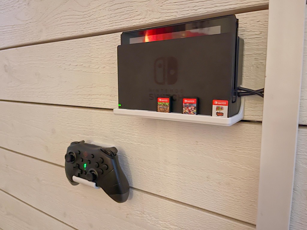 Giá treo tường đơn giản cho tay cầm chơi game, vừa cả Nintendo Joycon gắn kèm. Hoàn hảo kết hợp với giá đỡ tường Nintendo Switch của mình để có một không gian tường gọn gàng nhé. In bằng PLA, supports có, không cần raft.