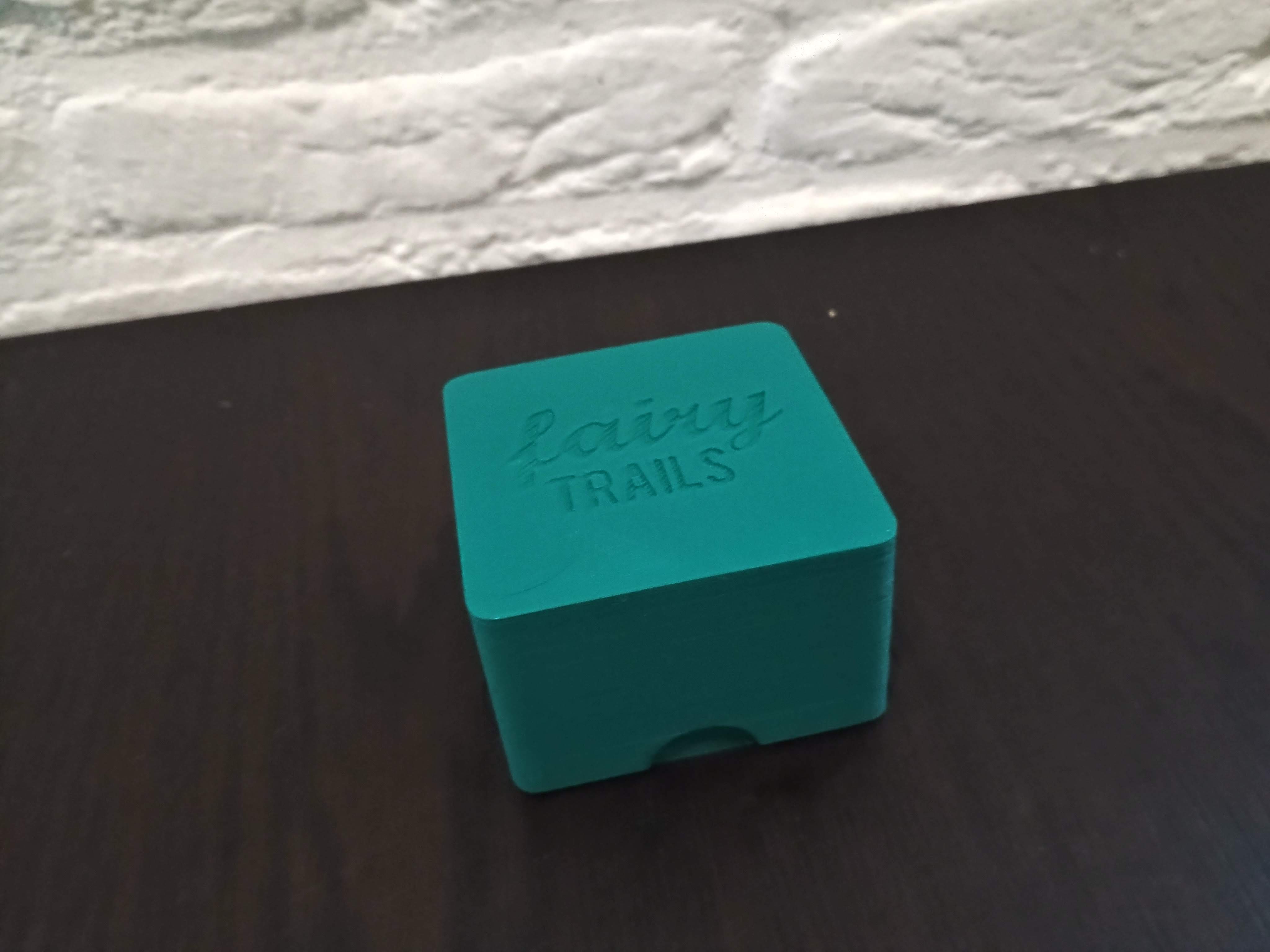 Hộp đựng đồ chơi du lịch cho game 'Fairy Trails' (White Goblin Games). Vừa khít các ô gạch và hạt thủy tinh. Có 2 phiên bản (Cao/Rộng) và tùy chọn nắp có/không có chữ. In cả đáy và nắp nhé!