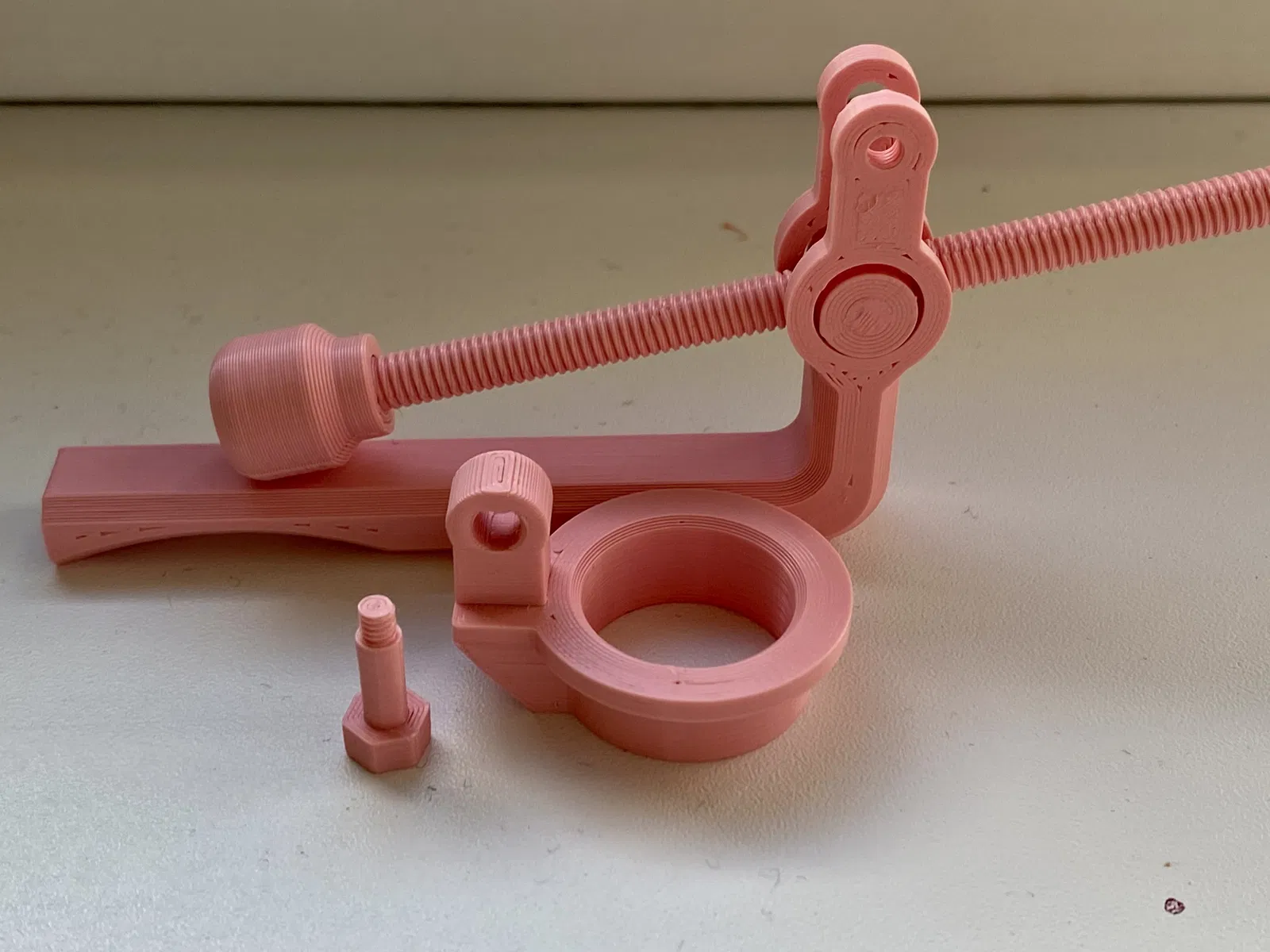 Sử dụng ốc vít dài đã in để làm chạy ren của đai ốc cho việc sử dụng dễ dàng hơn, sau đó lắp ráp tất cả các bộ phận như trong ảnh.