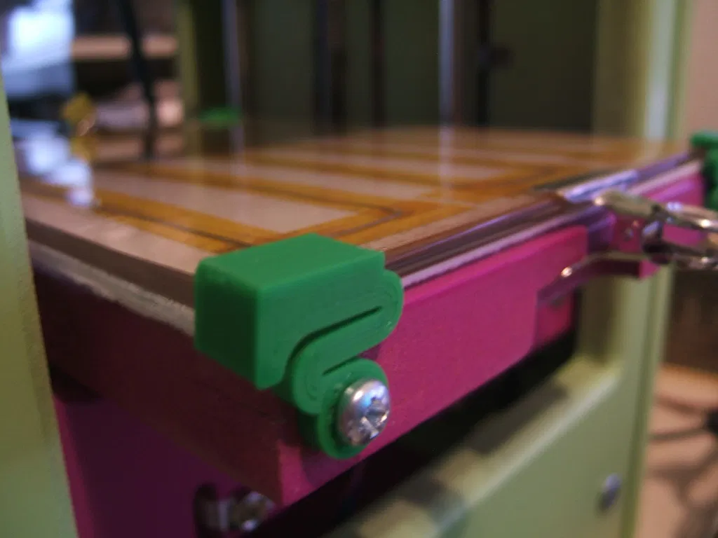 Một phiên bản khác của bracket cho bàn nhiệt, được chỉnh sửa từ phiên bản của Brixhamengineer. Lò xo giúp kéo mặt kính xuống bàn nhiệt đều, làm nén các lớp cách nhiệt ở giữa.