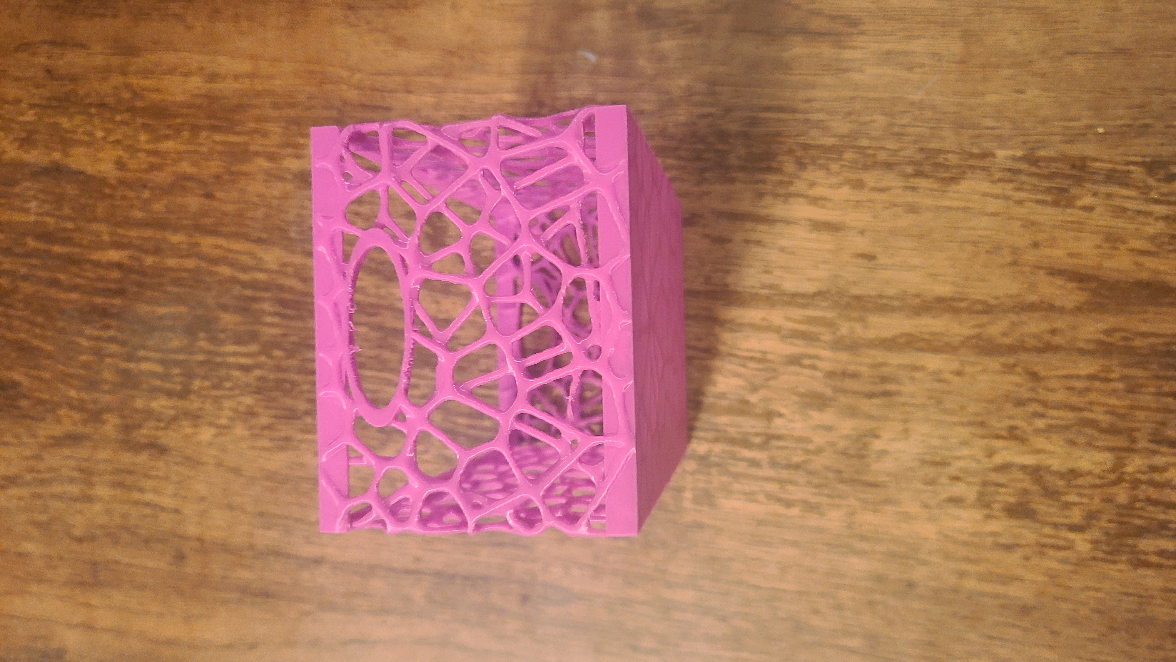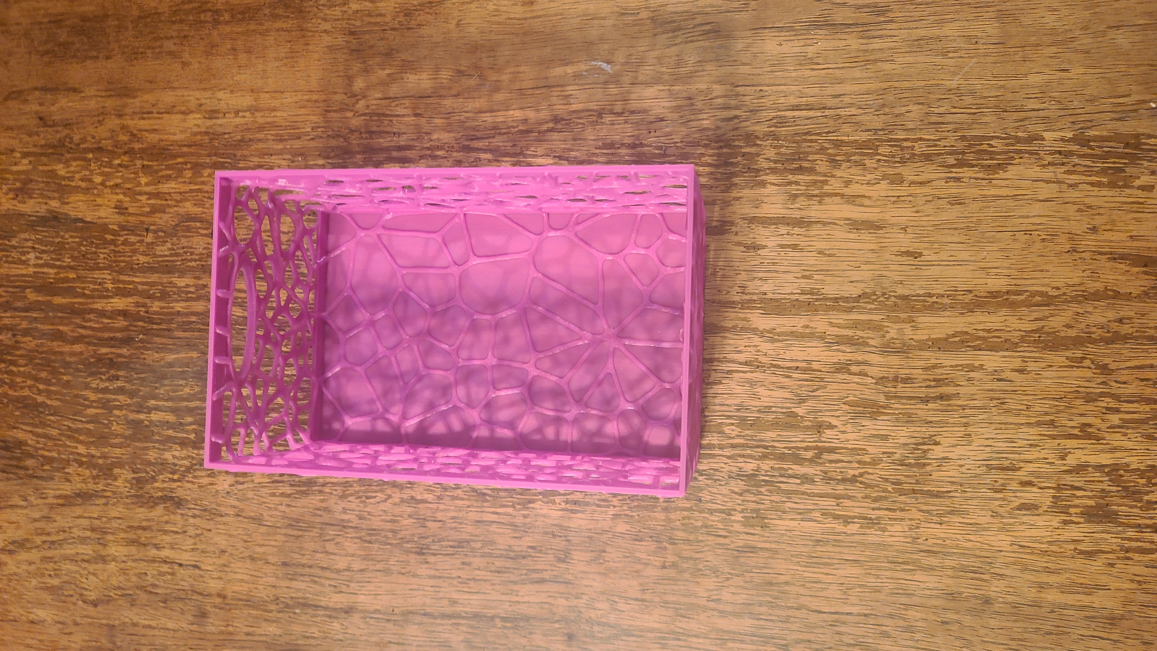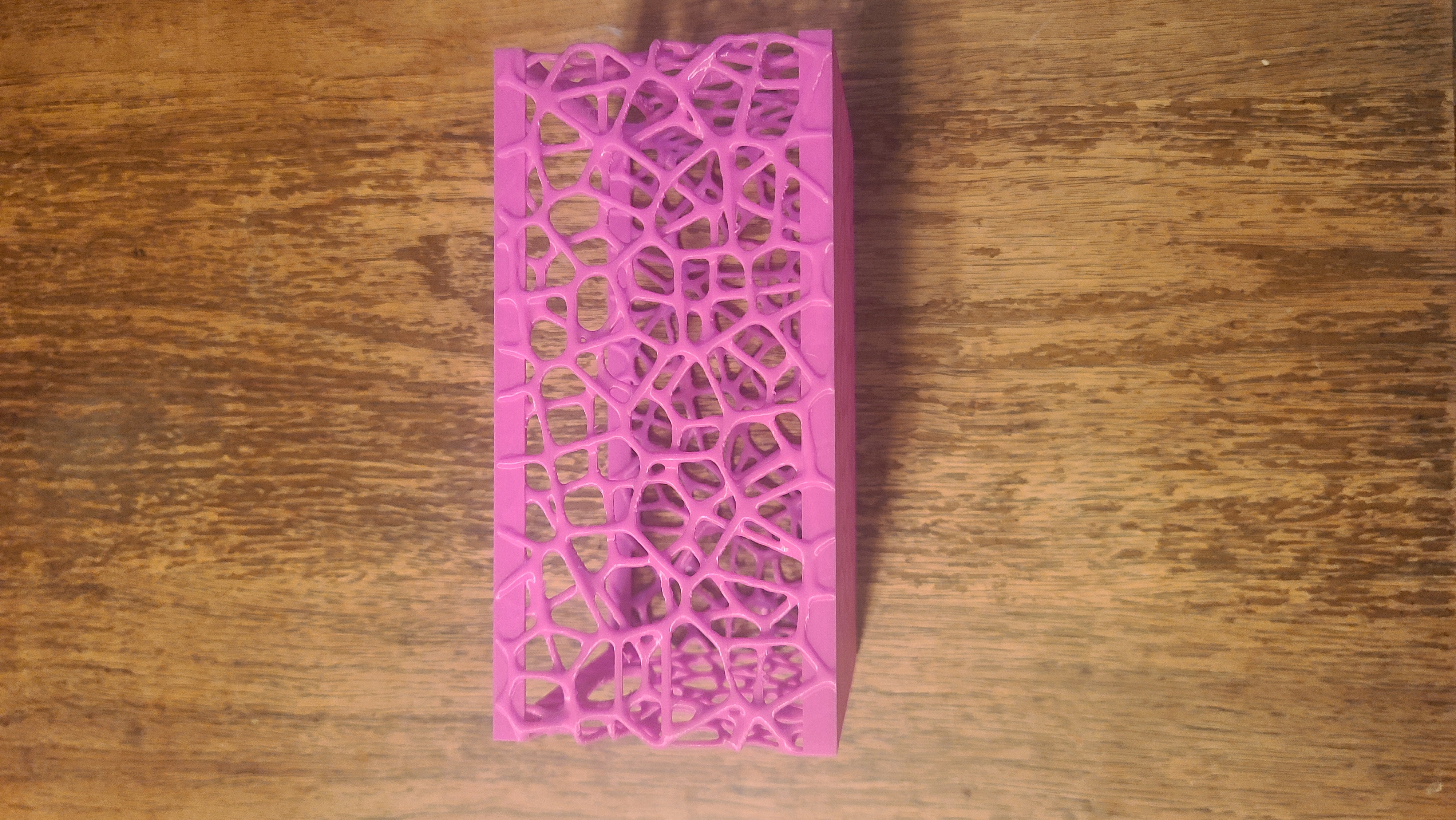 Hộp Voronoi có tay cầm và đáy kín, kích thước 8" x 5" x 4", không cần vật liệu hỗ trợ nhưng nên dùng để có kết quả tốt nhất. Có file STL và file cấu hình Bambu Studio đi kèm, hỗ trợ in nhiều màu với AMS. Kiểm tra các tùy chọn giấy phép thương mại trên Patreon.