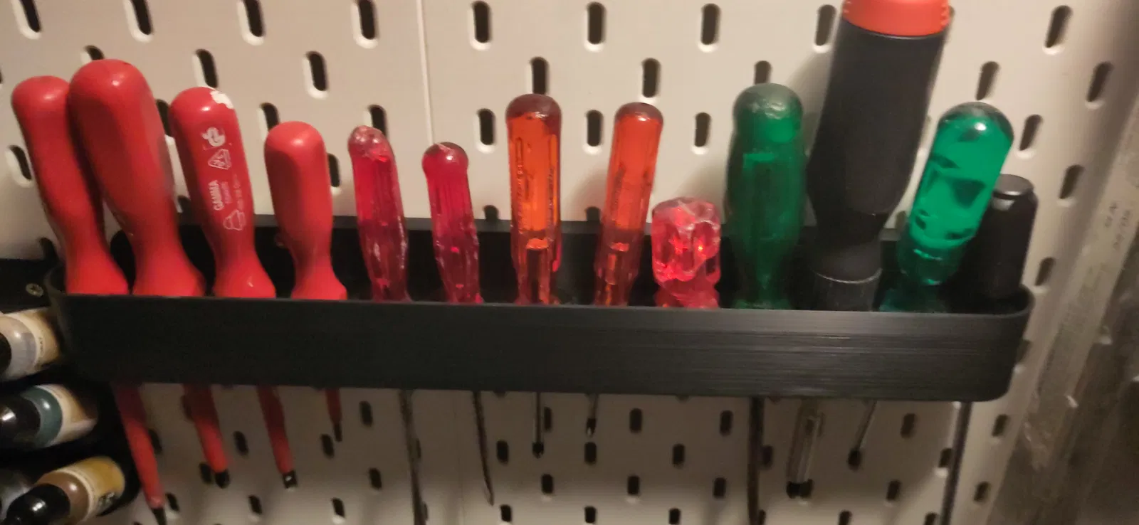 Bộ giá đỡ đồ nghề Skadis đa năng, in 3D không cần vật liệu hỗ trợ. Đế giá đỡ in 100% độ đặc ruột, các bộ phận còn lại in 10% độ đặc ruột. Phù hợp để sắp xếp gọn gàng các dụng cụ sửa chữa và thủ công.