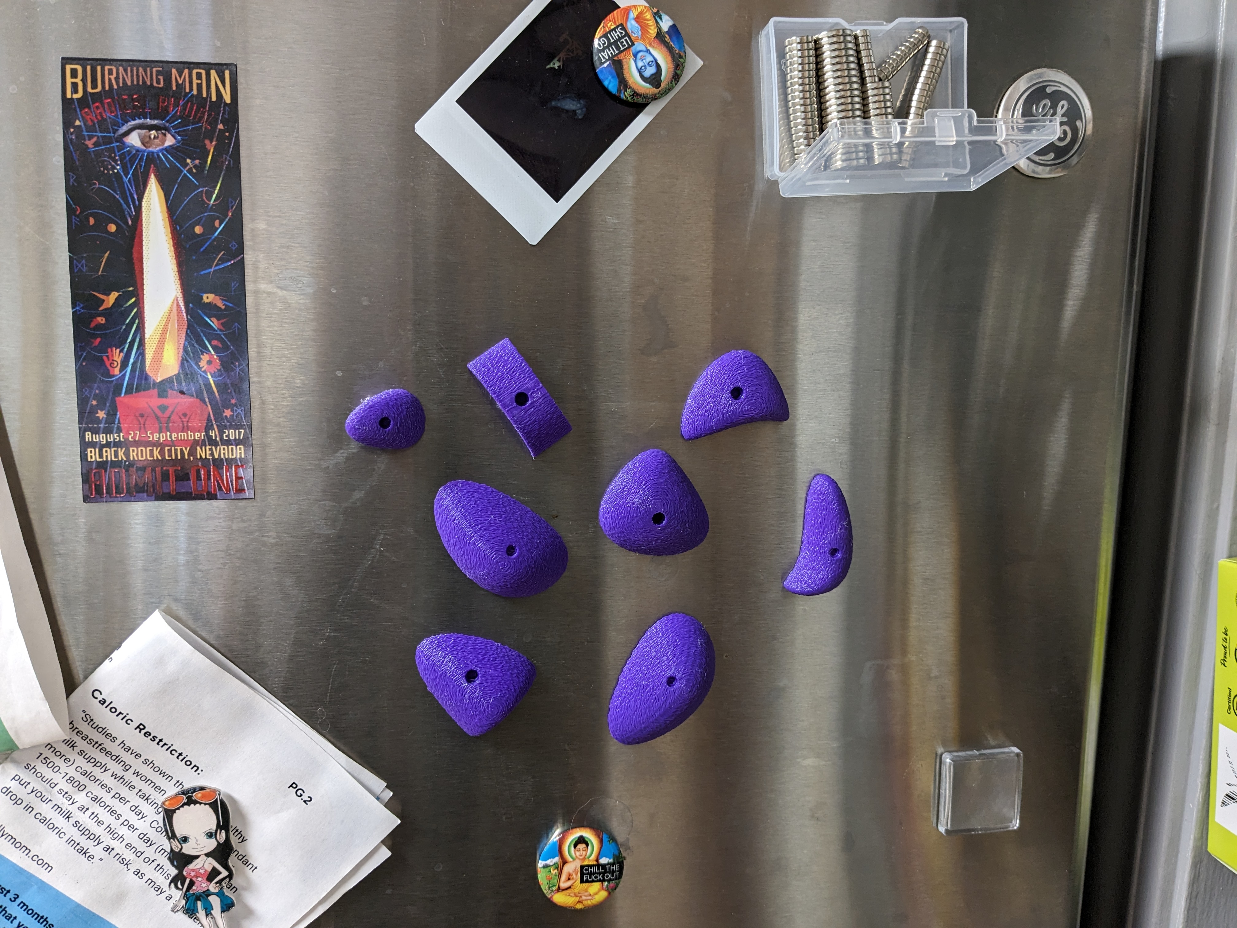Chỉ cần dùng keo siêu dính (super glue) gắn một nam châm neodymium 12mm x 2mm vào lỗ ở mặt sau là bạn đã sẵn sàng để chinh phục những "tuyến đường" trên tủ lạnh rồi!