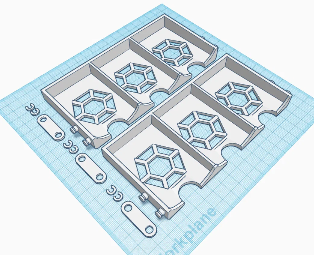 Khay đựng bài Catan gập gọn và có thể ghép nối. Phiên bản V1 này cho phép bạn in các khay đựng và bộ phận bản lề, sau đó tùy ý ghép chúng lại với nhau để tạo thành một hệ thống lưu trữ bài Catan hoàn chỉnh.