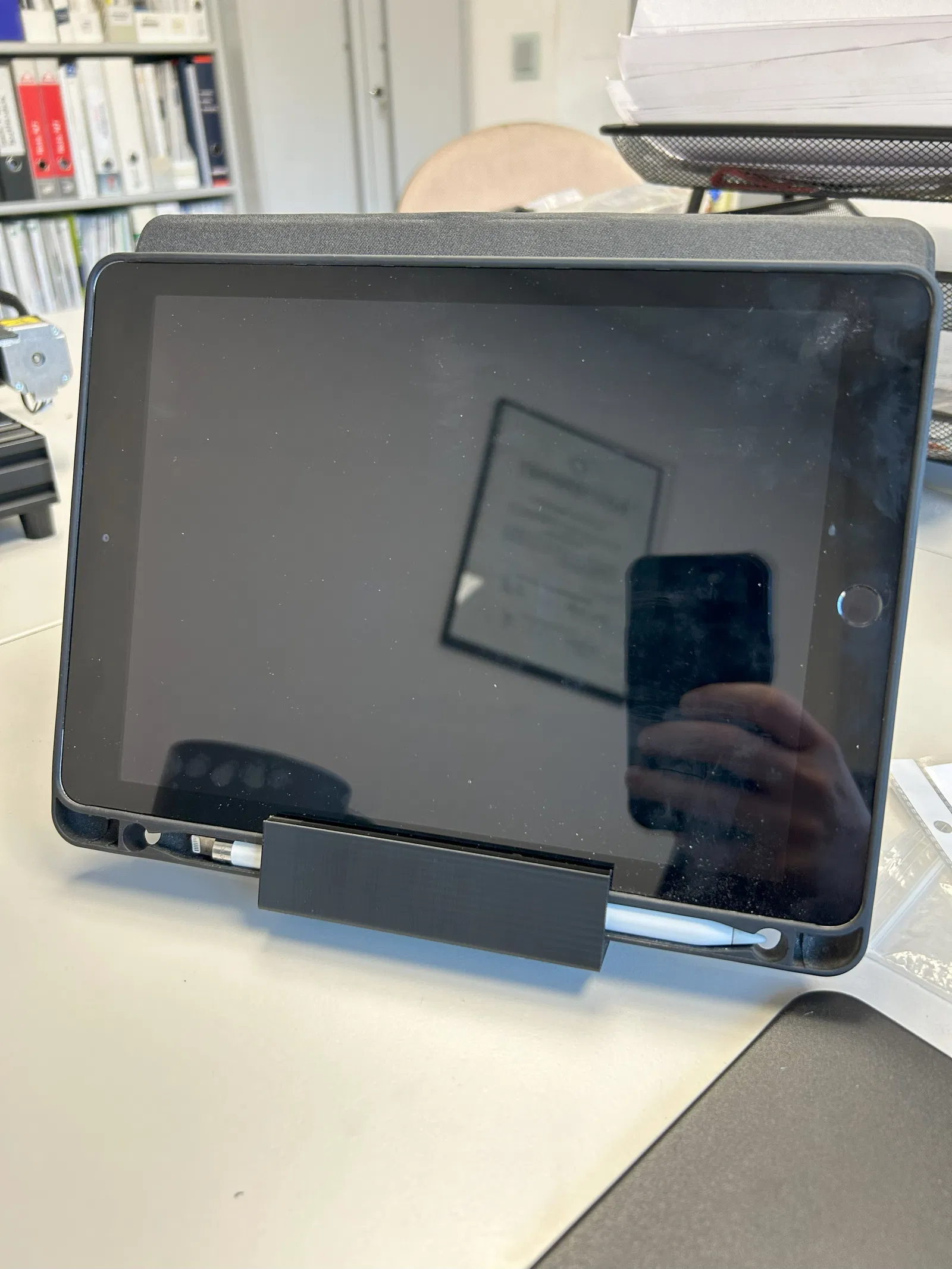 Có hai phiên bản. Một phiên bản là loại đa năng cho tất cả các máy tính bảng phổ biến. Phiên bản còn lại được tùy chỉnh cho máy tính bảng của tôi kèm ốp lưng và có gờ dưới cao hơn tương ứng. Có file STL cho cả hai phiên bản.