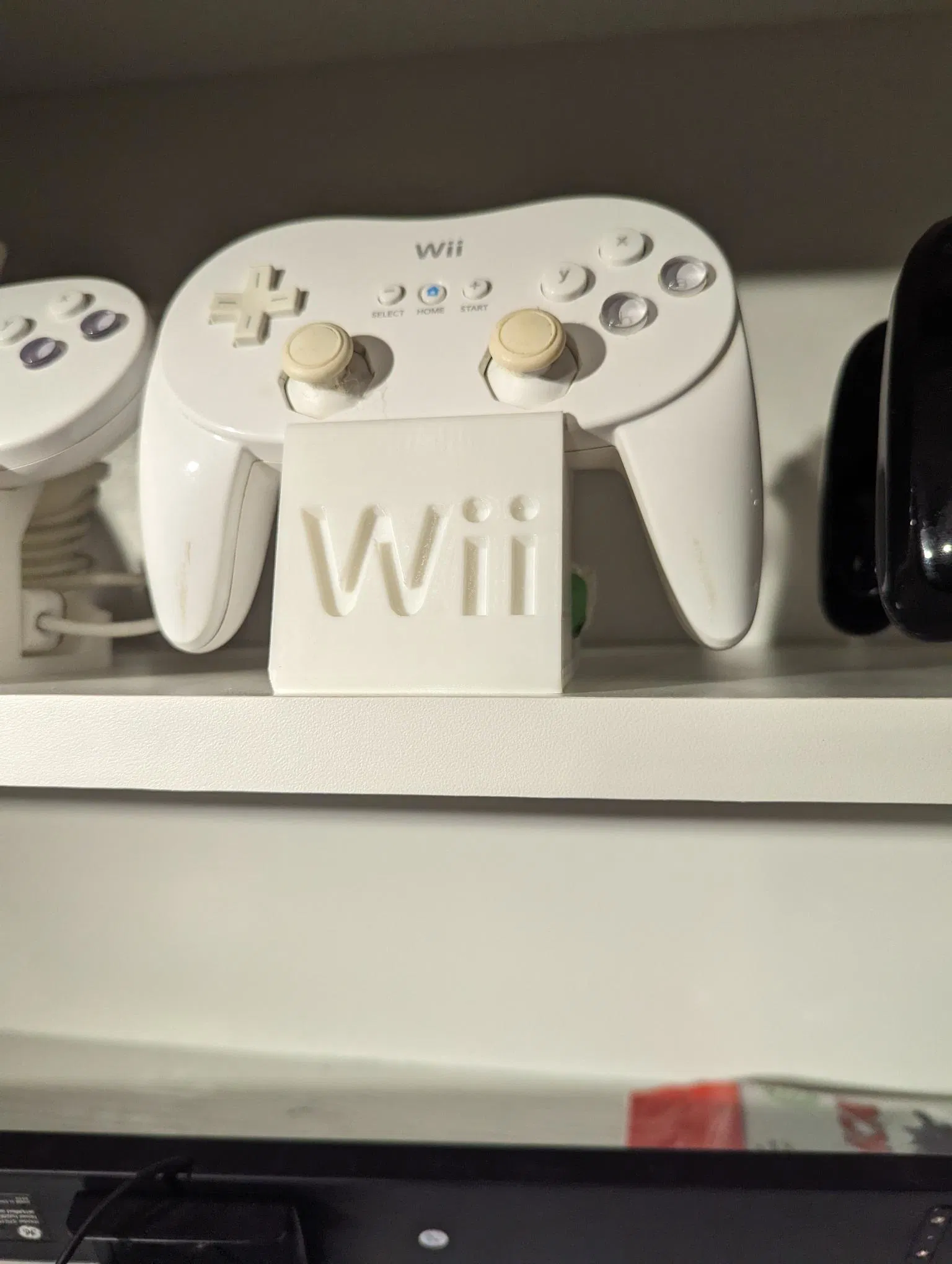 Một giá đỡ dễ dàng để cất giữ bộ điều khiển Wii, phù hợp với cả hai mẫu tiêu chuẩn (Classic và Pro). Bao gồm cả logo Wii.