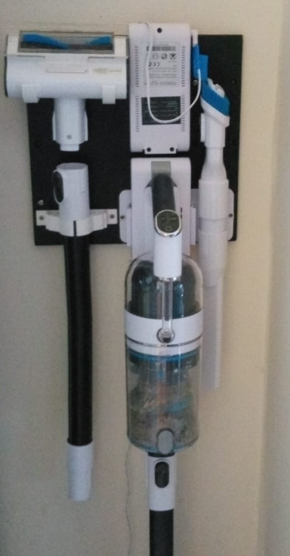 Bộ giá treo tường cho tất cả các bộ phận, bao gồm cả pin phụ của máy hút bụi không dây Hoogo S4. Giúp bạn cất giữ máy gọn gàng và tiện lợi.