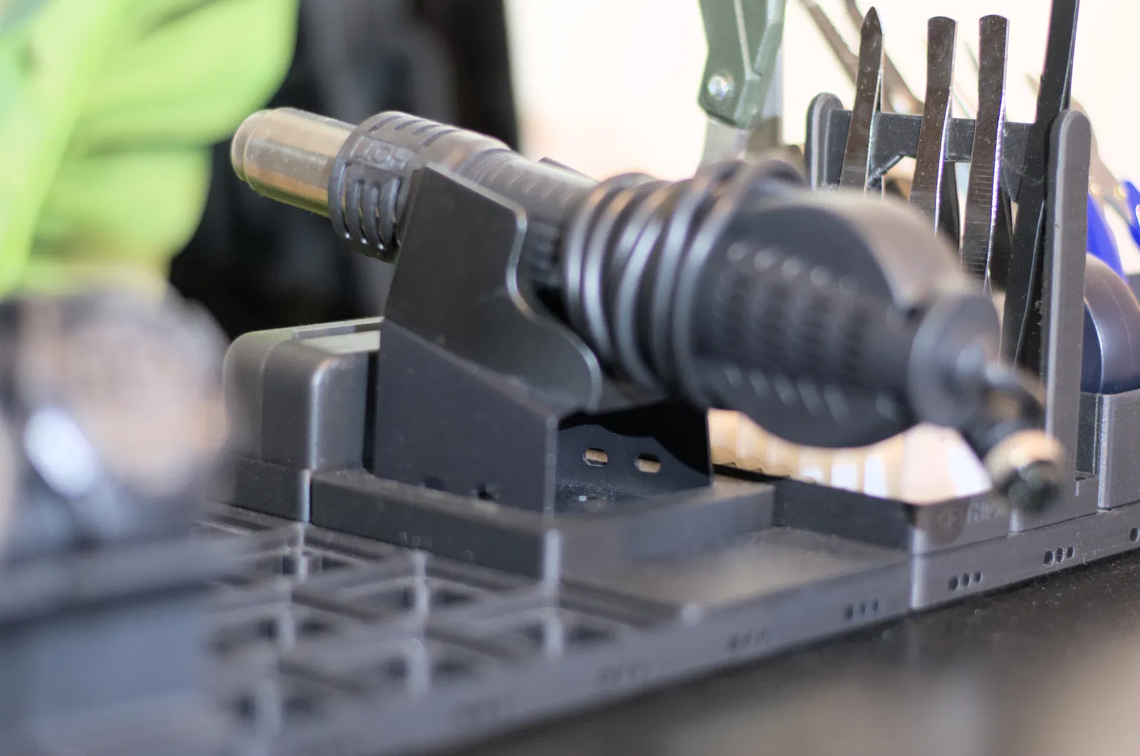 Giá đỡ Gridfinity 2x2 này được thiết kế riêng cho chân đế đi kèm với súng hơi nóng. Sản phẩm có thiết kế vừa khít, đảm bảo giữ chặt chân đế một cách chắc chắn và ổn định.