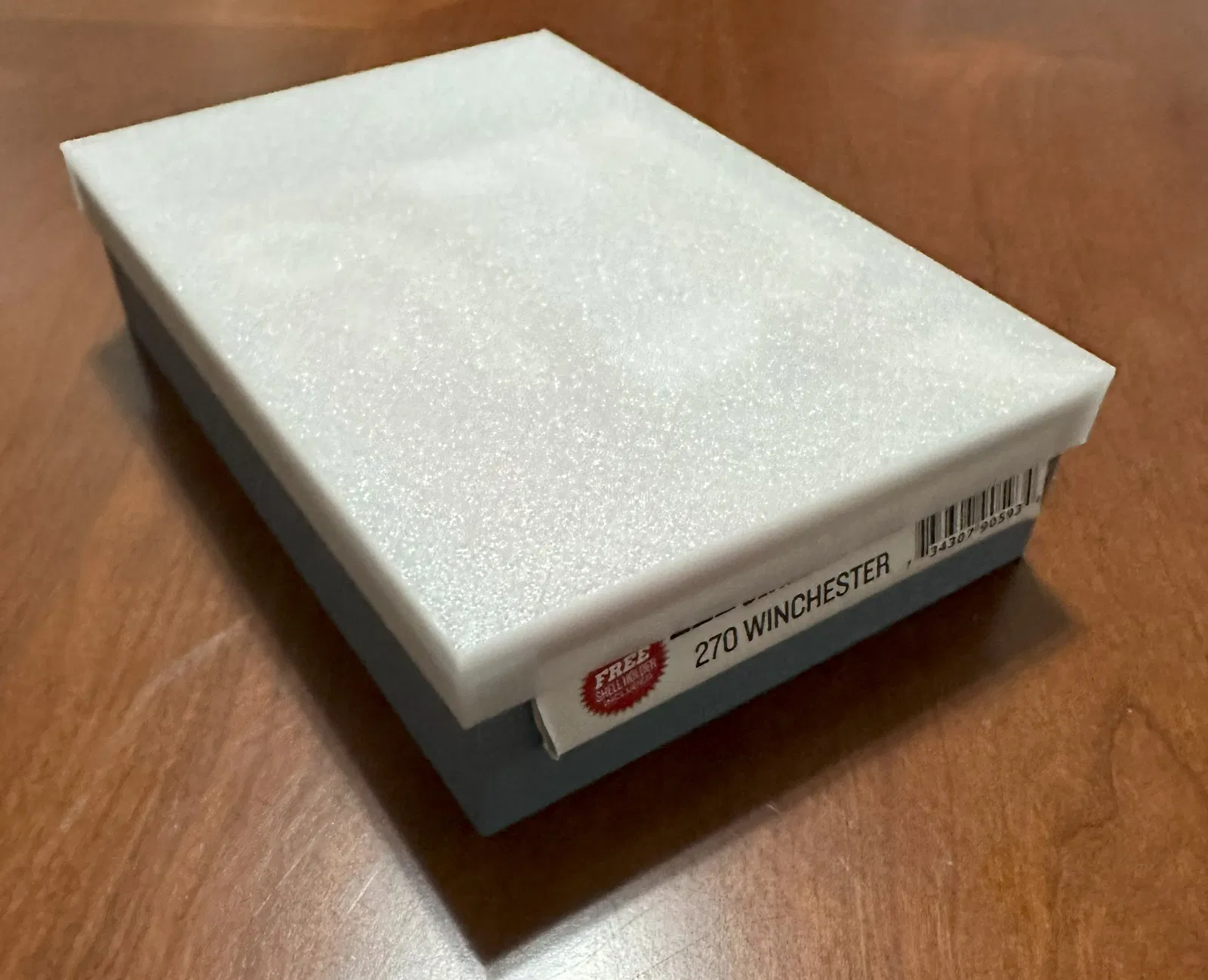 Thiết kế lại hộp đựng khuôn nạp đạn của Lee, loại đi kèm với tất cả các bộ khuôn nạp đạn của Lee, để bạn có thể giữ nguyên các vòng khóa Hornady LNL trên khuôn khi cất giữ (hộp zin của Lee quá nhỏ và nắp không đóng lại được). Hộp này có thể dùng tốt cho tất cả các cỡ đạn vì hộp của chúng khá tiêu chuẩn. Nắp có các khía nhỏ để bấm vào thân hộp cho chắc chắn.