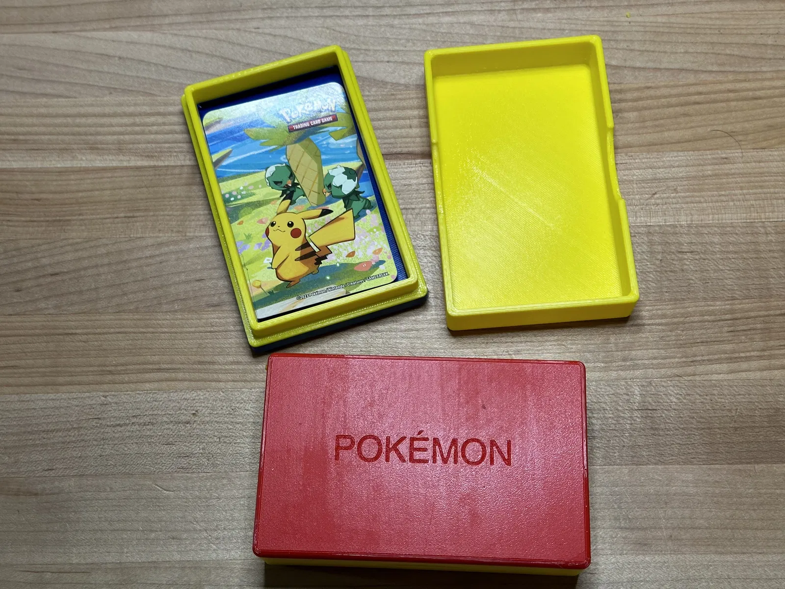 Hộp đựng này làm riêng cho thẻ POKÉMON, nhưng mà mấy thẻ nhỏ hơn 63x108mm đều vừa hết nha. Chất liệu PLA cứng cáp, in xong xài luôn không cần support.