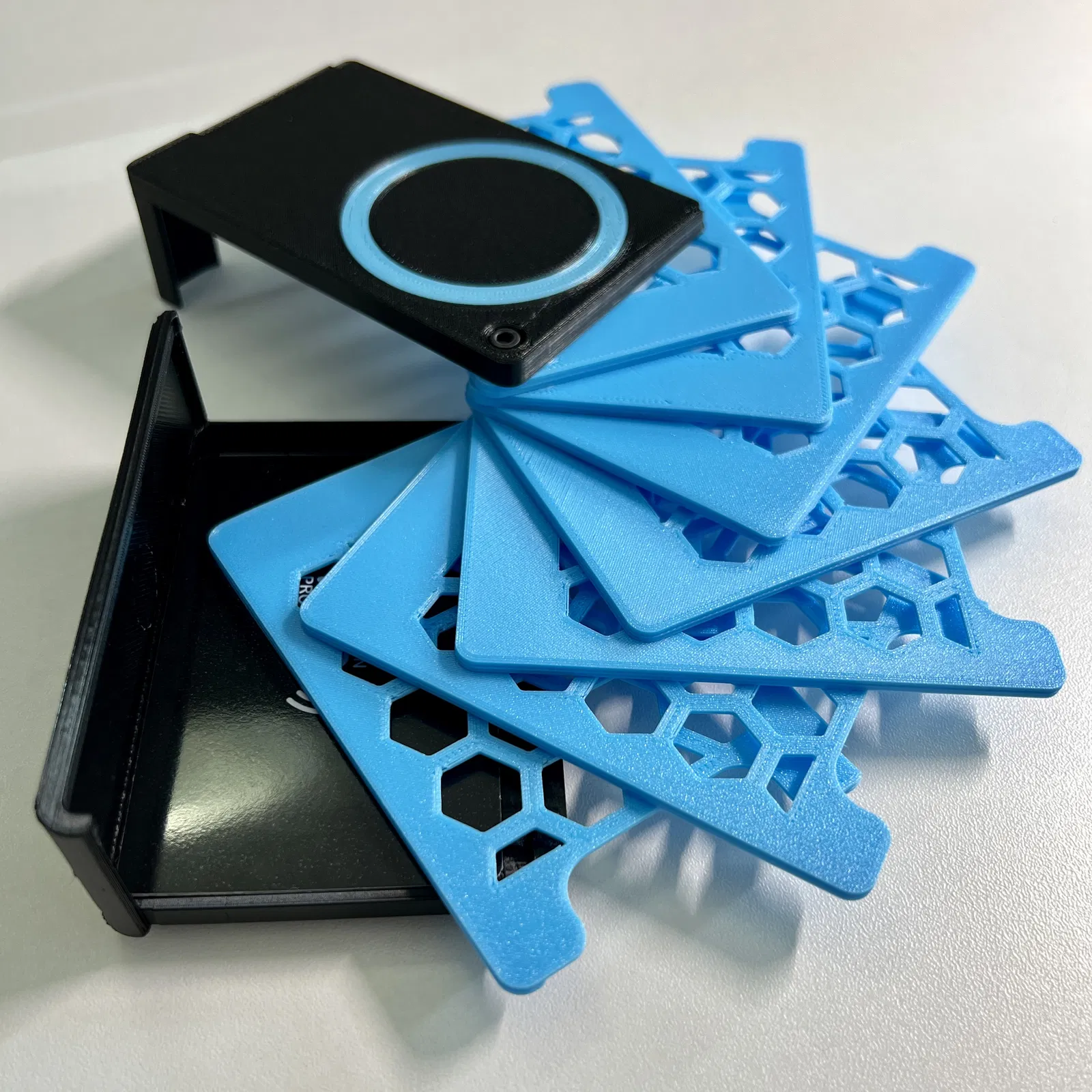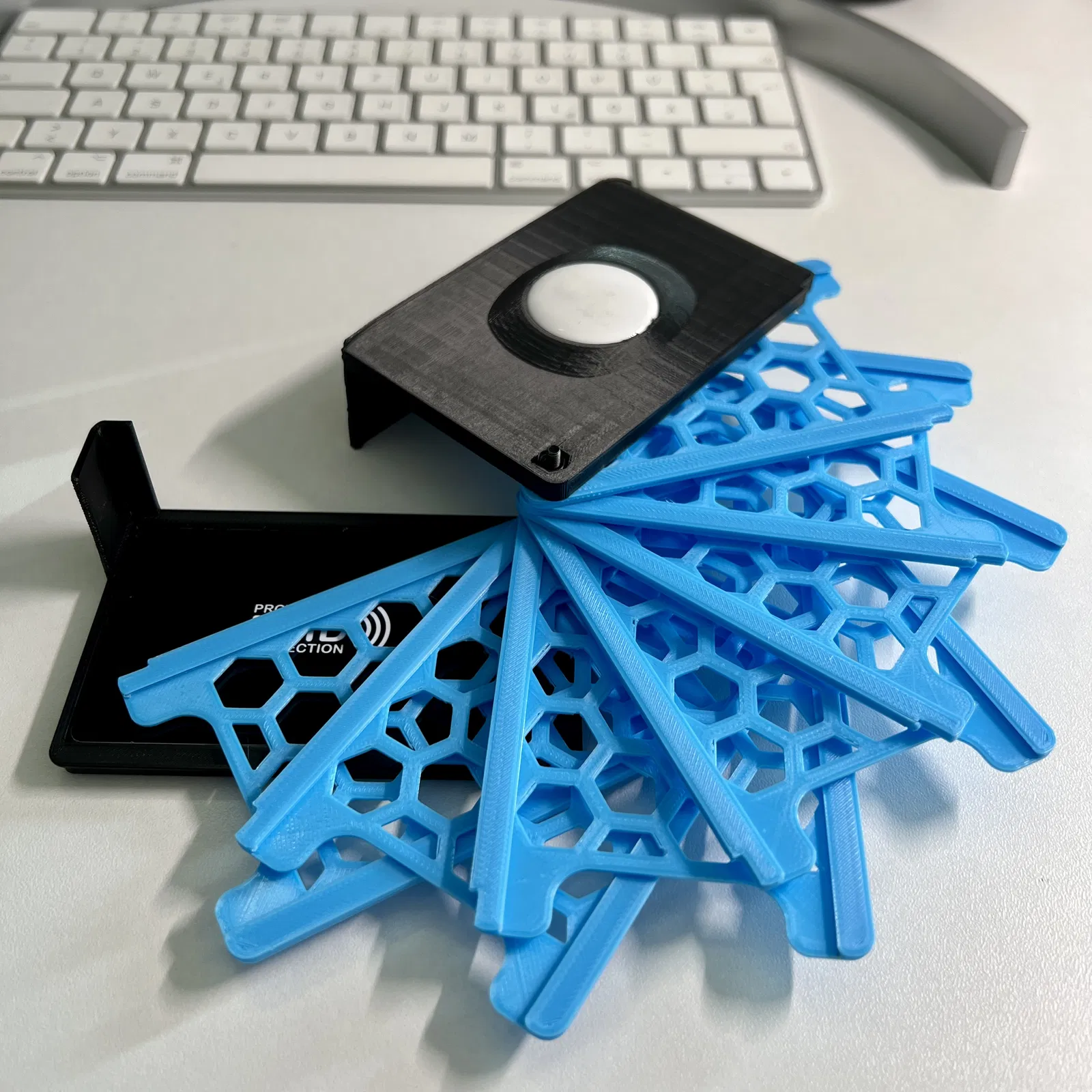Mình đã chỉnh sửa lại mẫu để có thể chứa được 7 thẻ, kèm theo cả AirTag và nam châm MagSafe. Mình cũng đã sửa lại nó để dùng ốc vít và đai ốc M3.