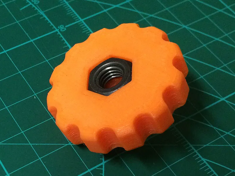 Đây là núm vặn tay đơn giản, đường kính ngoài 40mm, dùng với đai ốc M8 tiêu chuẩn. Hướng dẫn in chi tiết cho máy Prusa Mk2, cần hỗ trợ cho phần lõm đai ốc.