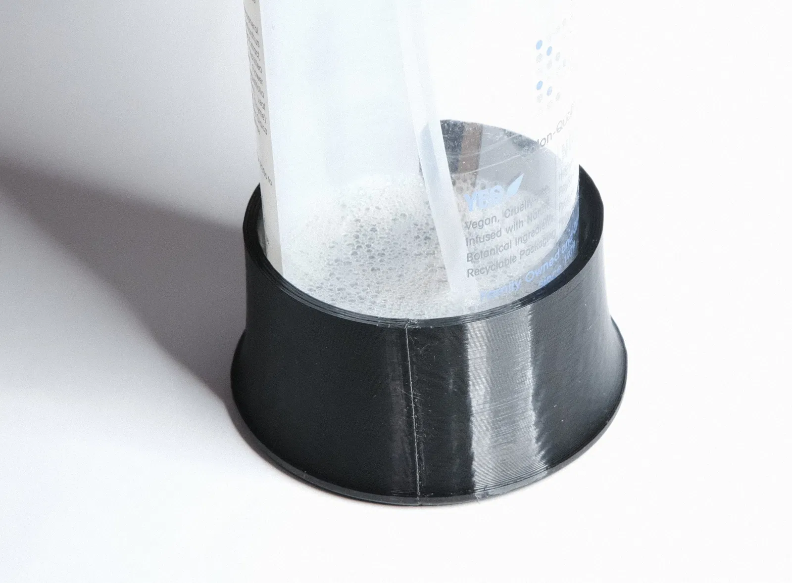 Thiết kế để chứa vừa chai có đường kính nhỏ hơn 50mm một chút, nhưng cũng có thể gắn khít với chai 50mm. Không cần in hỗ trợ.