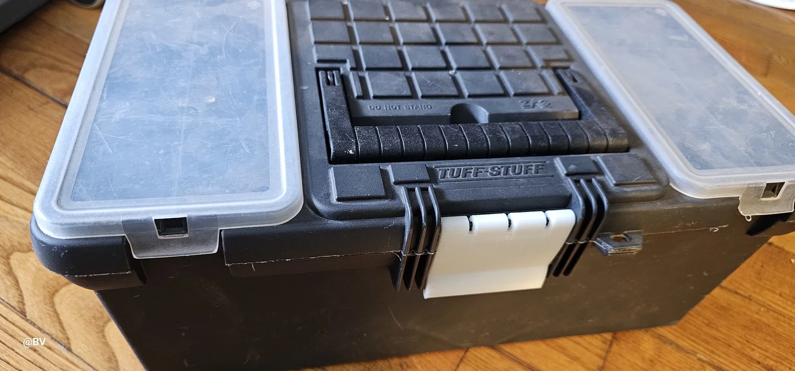 Cái chốt tủ đồ nghề ZAG TUFF-STUFF này rộng 62mm, in mặt đáy lên trên, không cần support. Mấy cái rãnh bản lề in ra khá ngon, chỉ cần dũa lại chút là xài được.