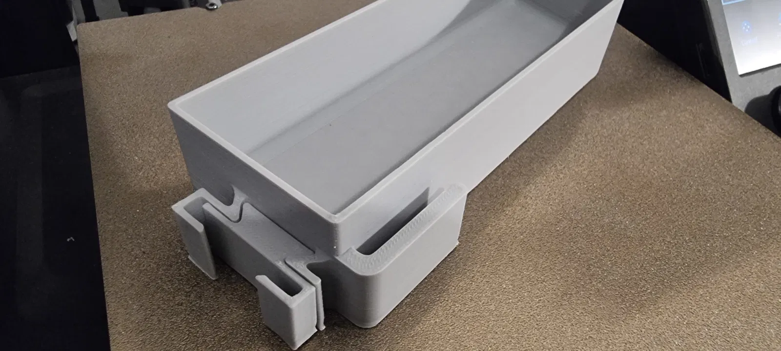 Mẫu khay đựng bên trái mới cho Ender 3 V3 SE, được thiết kế rộng hơn và có bo góc lớn giúp dễ lấy dụng cụ. Giải pháp thay thế cho khay kẹp dễ bị rơi ra.