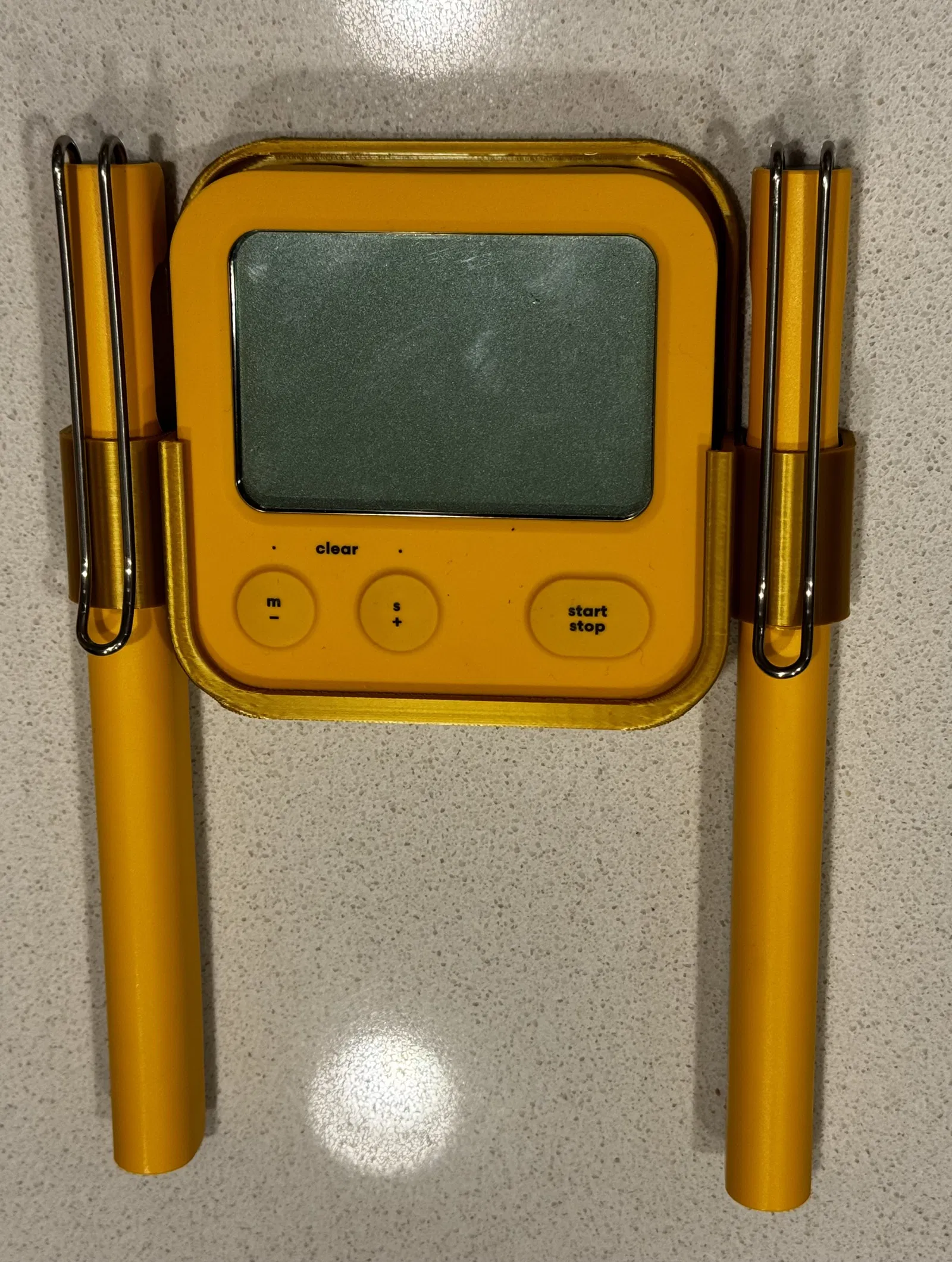 Tui làm cái hộp nam châm này để dán 2 cái nhiệt kế Combustion Thermometers và màn hình lên tủ lạnh. Cả hai cục đều có thể để chung với nhau cho gọn. In bằng PLA, có nam châm dán chắc chắn.