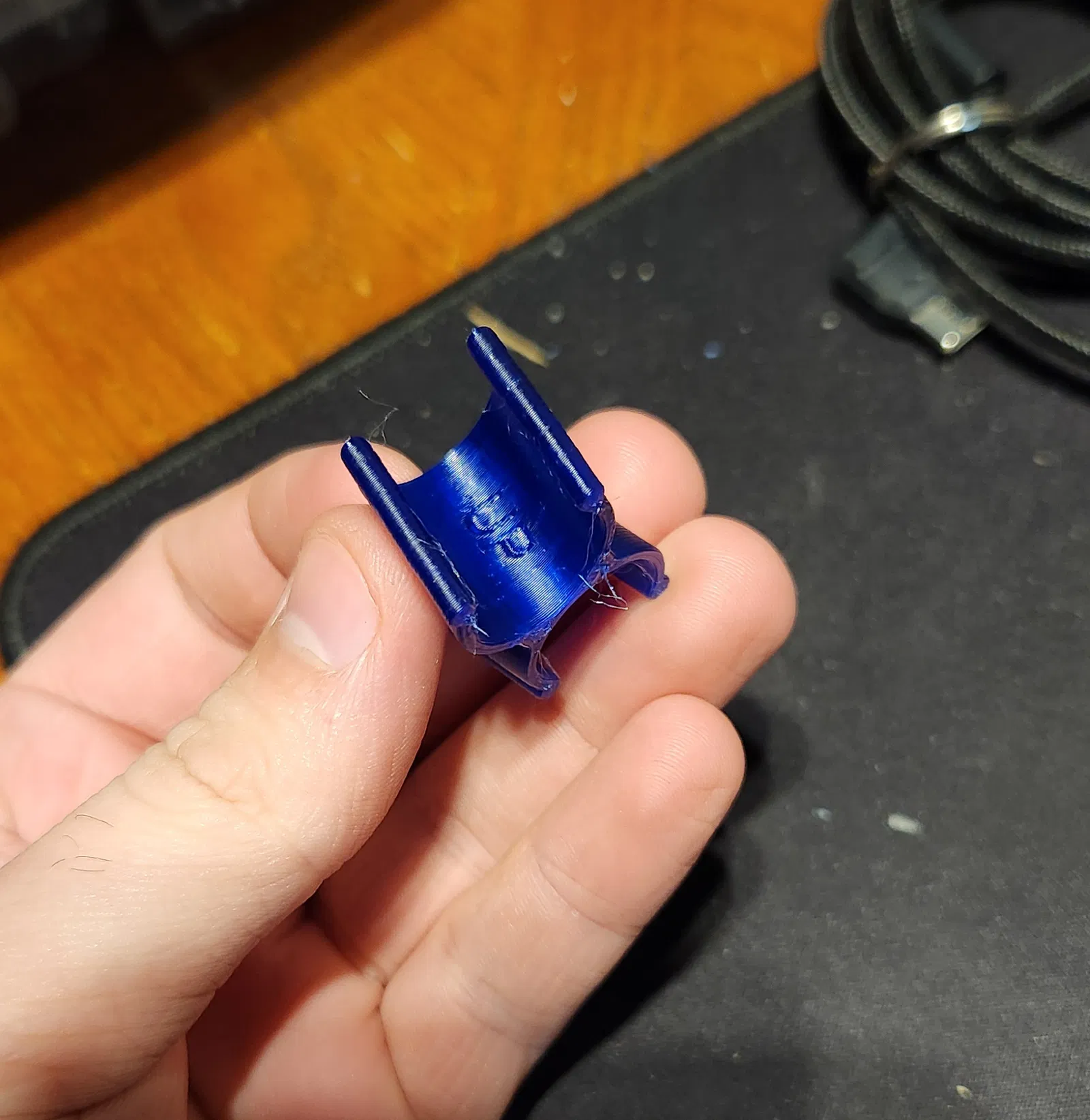 Cái kẹp này giữ cho ống nước làm mát không vướng vào thanh chống mui xe độ. Có hai loại kẹp: một cho ống xăng và một cho ống nước làm mát, với sai khác nhỏ 0.1mm. Ban đầu in bằng PETG, nhưng đã thử nghiệm và cần vật liệu chịu nhiệt tốt hơn như ABS hoặc ASA do nhiệt độ cao.
