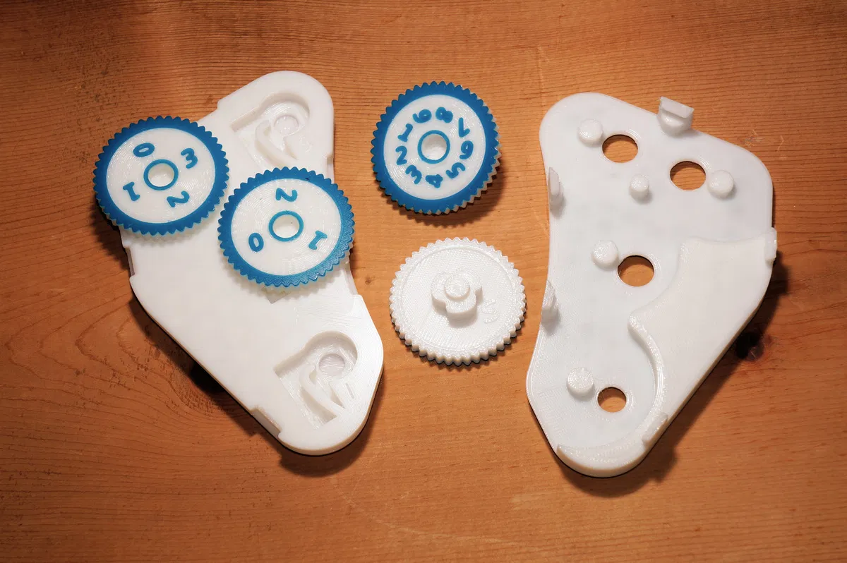 In ấn: Mẫu này đã được tối ưu hóa cho lớp in 0.2mm. Có thể sử dụng lớp in mỏng hơn 0.1mm, nhưng không khuyến khích dùng lớp dày hơn. Mẫu này yêu cầu một số kỹ thuật in bridging nhưng không cần dùng support. Để in các ký tự nhỏ được rõ ràng, khuyến nghị dùng nozzle không lớn hơn 0.4mm. Có hai lựa chọn cho mặt số, một bộ có số in lõm/debossed và một bộ có số in nổi/embossed. Bộ có số in nổi chỉ rõ ràng khi in hai màu, với thao tác đổi màu filament được thực hiện sau 0.4mm (lớp 3 nếu dùng lớp 0.2mm) phía trên bàn in. Đây là bộ được khuyến nghị sử dụng nếu bạn có hai loại filament có màu tương phản và có thể thực hiện thay đổi filament giữa chừng. Các mặt số hai tông màu là rõ ràng nhất. Nếu bạn in mặt số chỉ với một màu, hãy sử dụng bộ có số in lõm/debossed. Mẫu này in tốt với PLA hoặc PLA+, nhưng nếu có thể bị bỏ quên dưới nắng hoặc trong tủ đồ nóng, PETG hoặc ABS sẽ là lựa chọn tốt hơn.