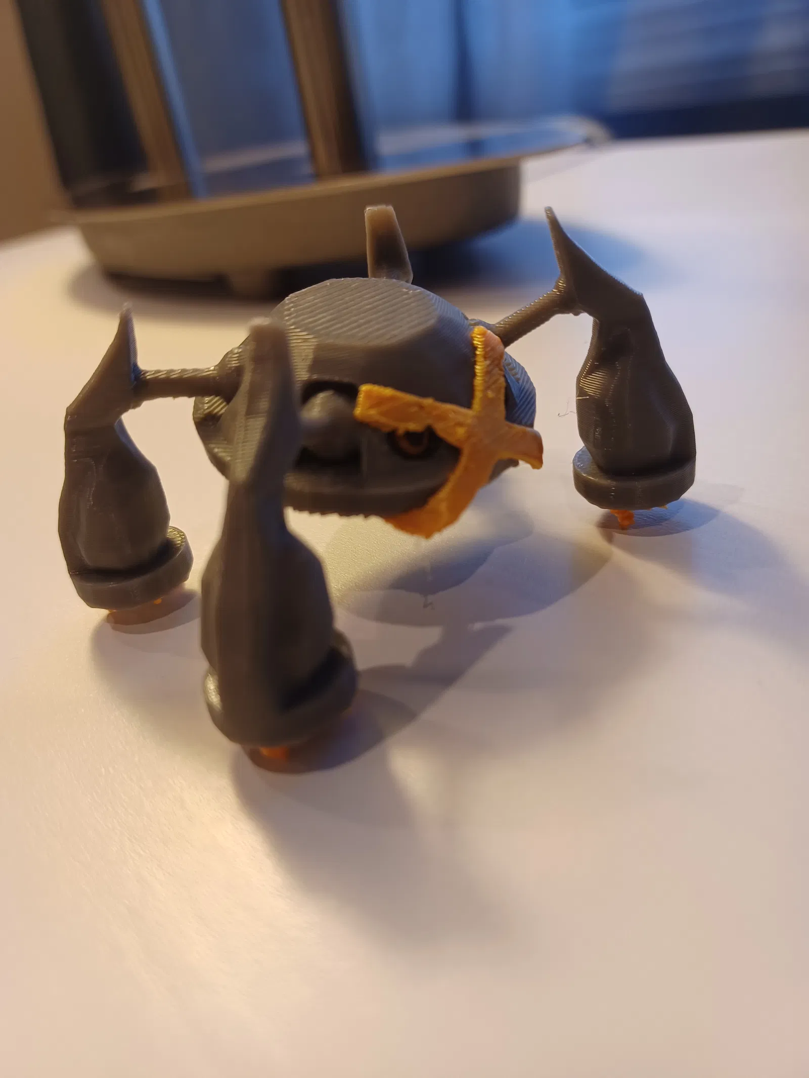Metagross 4 màu này được in thử nghiệm trên máy Bambu labs p1s với các màu xám, vàng, cam, đen. Người dùng muốn dùng màu đỏ cho mắt nhưng gặp sự cố với cuộn chỉ cam. Sẽ có mô hình tốt hơn sớm, sẽ đẹp hơn với màu bạc thay vì màu xám.