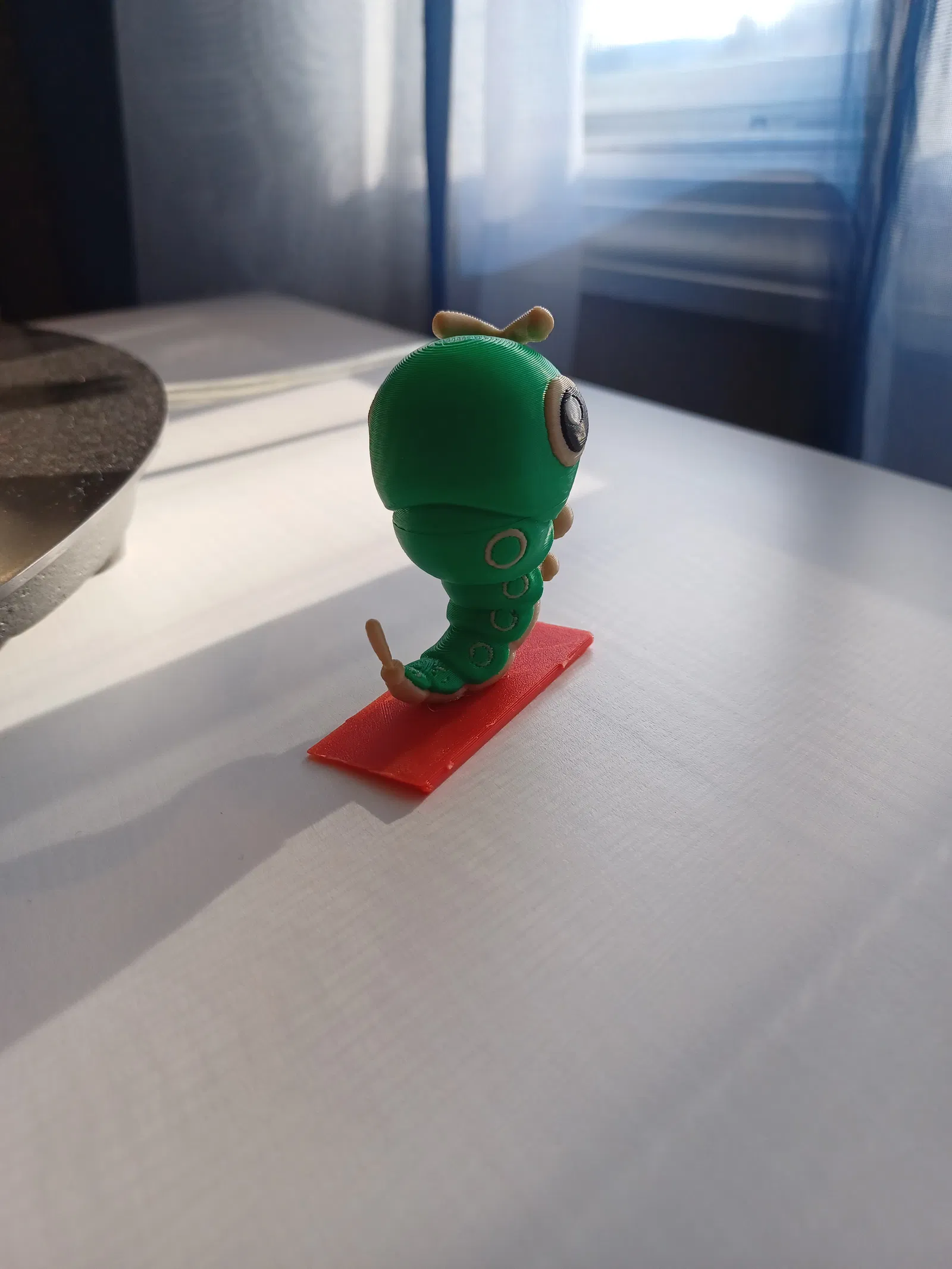 Mô hình Pokemon Caterpie 4 màu, được in bằng PLA với các màu trắng, be, xanh lá và đen. Bản in này hơi nặng ở phần đầu nên cần đế đỡ và có thể cần dán đế để giữ thăng bằng. Lưu ý, đây là bản tô màu lại của mô hình gốc bởi printedobsession.