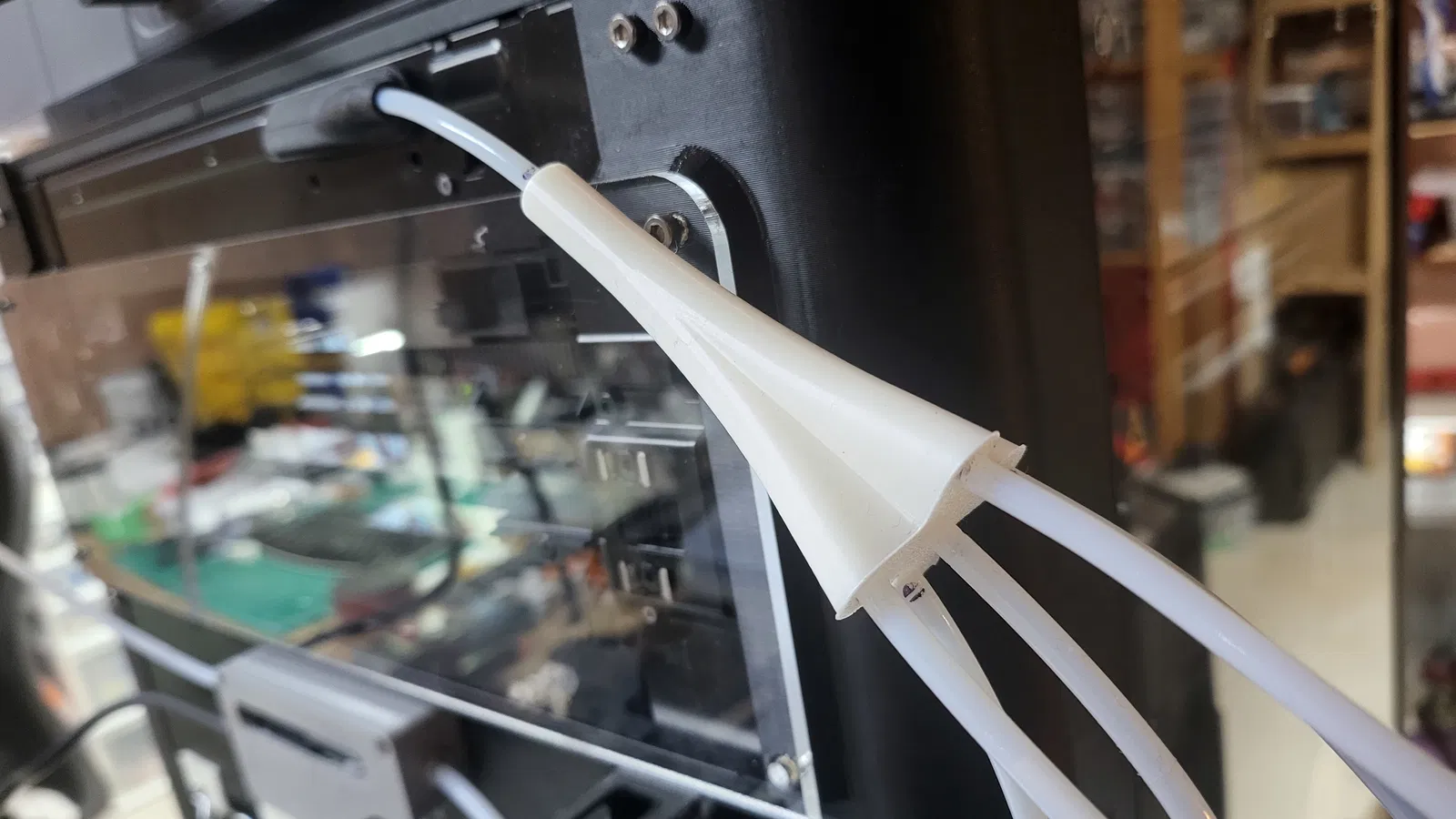 Tôi đã hoàn thiện bộ chia ống Bowden sau nhiều lần thử nghiệm, giờ đây có các phiên bản 2, 3 và 5 đường. Bộ chia này có đầu vào nghiêng, đầu nối PTFE tích hợp và in không cần hỗ trợ. Hướng dẫn lắp đặt chi tiết cho ống PTFE 4mm OD / 2mm ID, bao gồm cách cắt ren và độ sâu lắp đặt chính xác để tránh ma sát.
