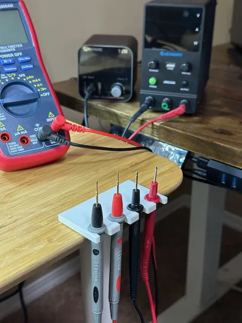 Cái này cho phép bạn treo được tới 4 đầu dò đồng hồ vạn năng, có file Fusion 360 để tùy chỉnh, thích hợp cho dân DIY, sửa chữa điện tử, sắp xếp đồ đạc gọn gàng.