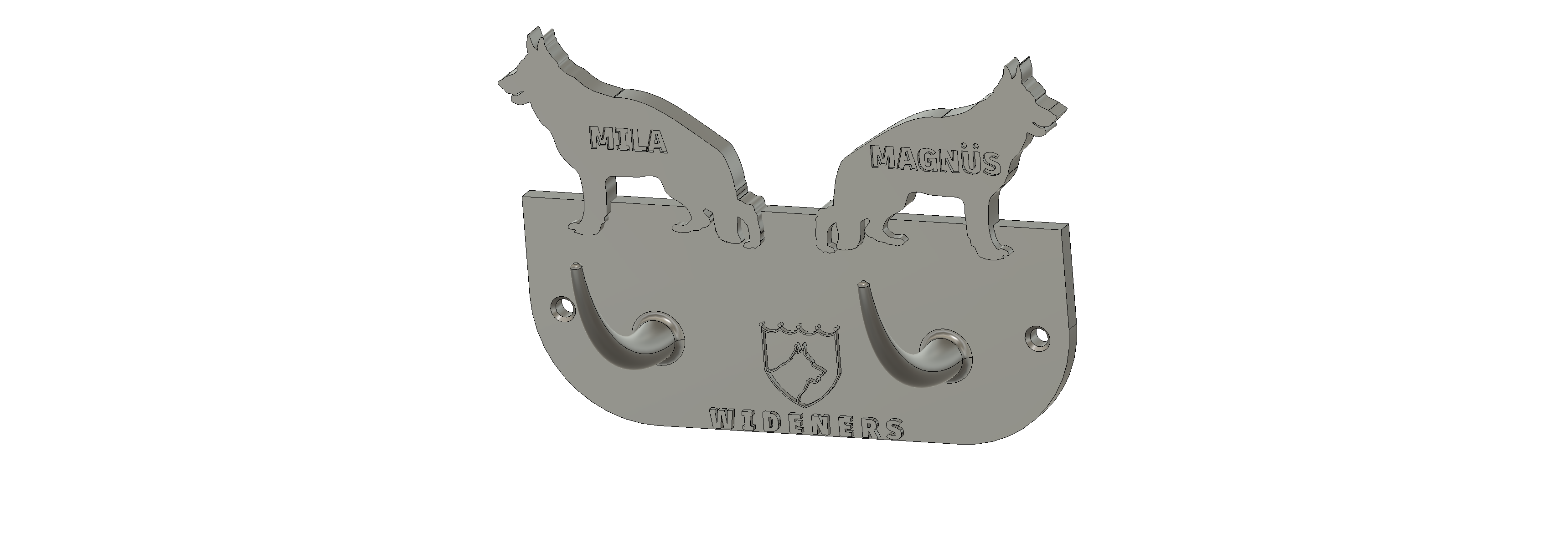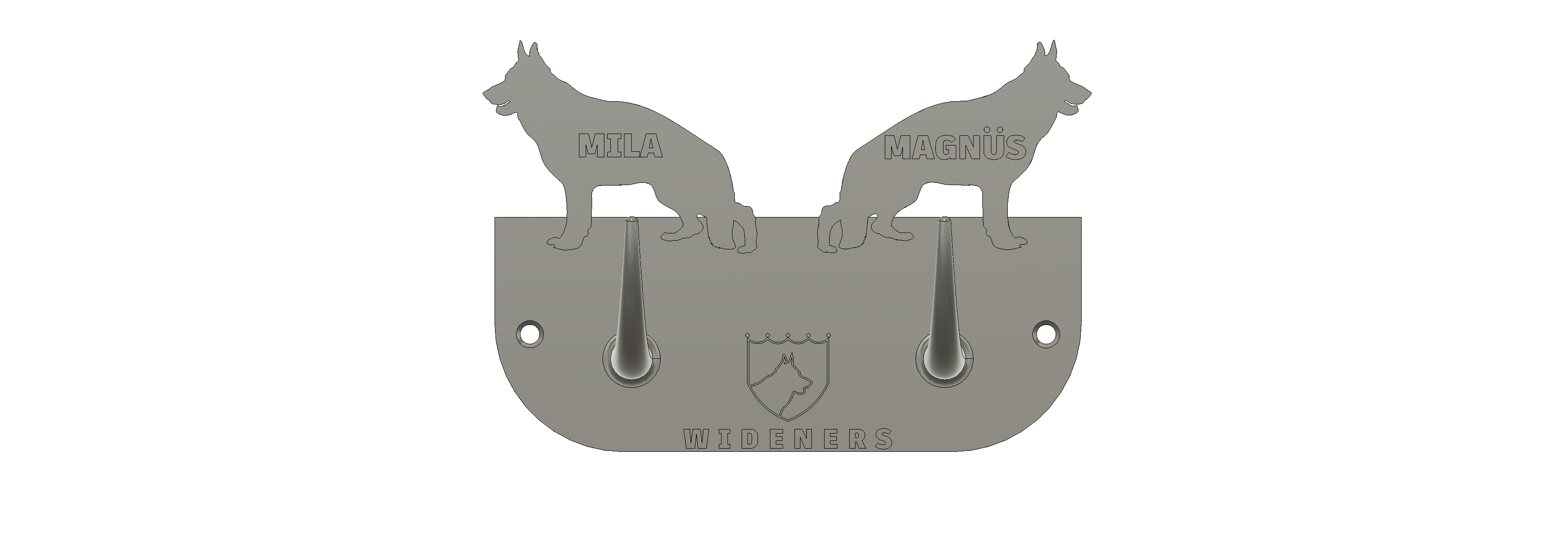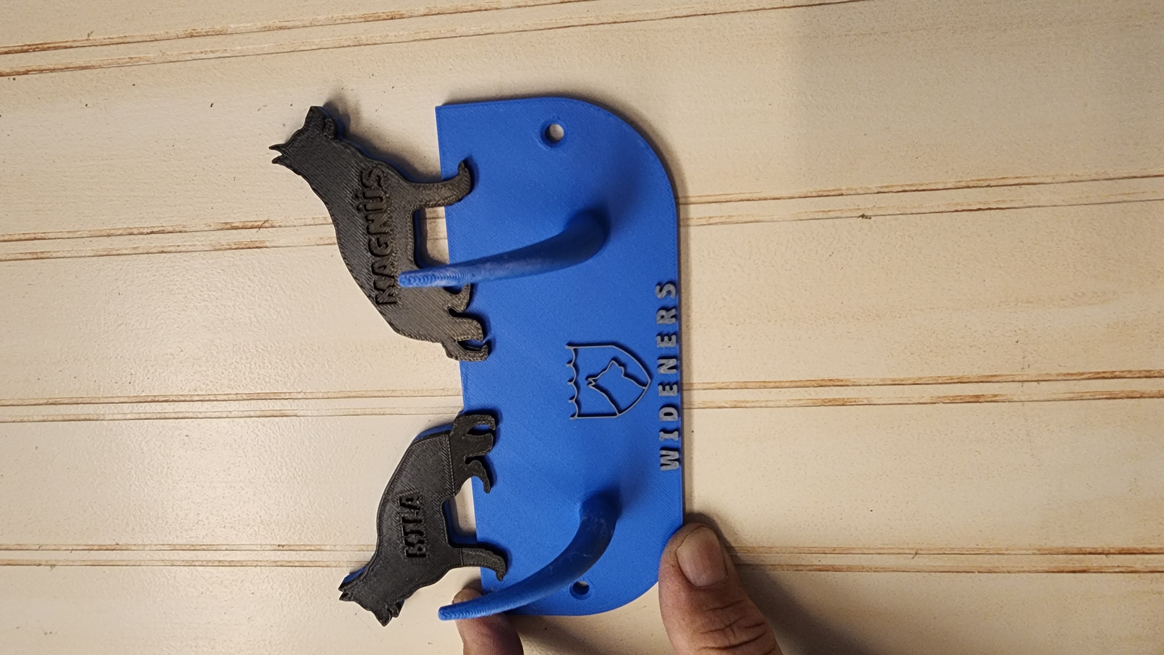 Đây là một cái móc giữ dây xích cho hai con chó chăn cừu Đức của tôi. Nó có thể cá nhân hóa nhưng tôi sẽ cung cấp một vài định dạng file khác nhau để bạn có thể tùy chỉnh theo ý mình. Tôi đã in mẫu của mình ở tỉ lệ 100% và mất 4.5 giờ trên máy Bambu của tôi. Tôi đã in phần phía sau, cách gắn đuôi không được chắc chắn nhất. Tuy nhiên, chúng có vẻ ổn cho đến bây giờ. Tôi lẽ ra đã thay đổi cài đặt khi in để có đuôi chắc chắn hơn, nhưng tôi đang cố gắng giảm thiểu việc thay đổi sợi nhựa. Tôi cũng quên điền tên của những con chó của mình :(