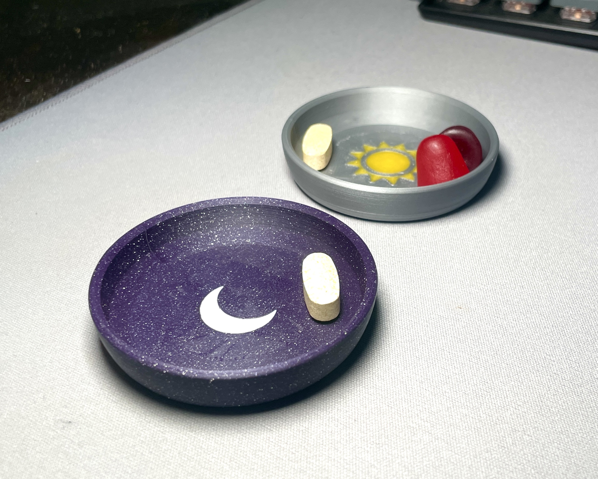 Hộp đựng thuốc giúp bạn uống thực phẩm bổ sung buổi sáng và buổi tối, với thiết kế lấy cảm hứng từ mặt trời và mặt trăng.