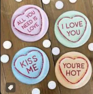 Kẹo trái tim yêu thương với nhiều dòng chữ khác nhau: