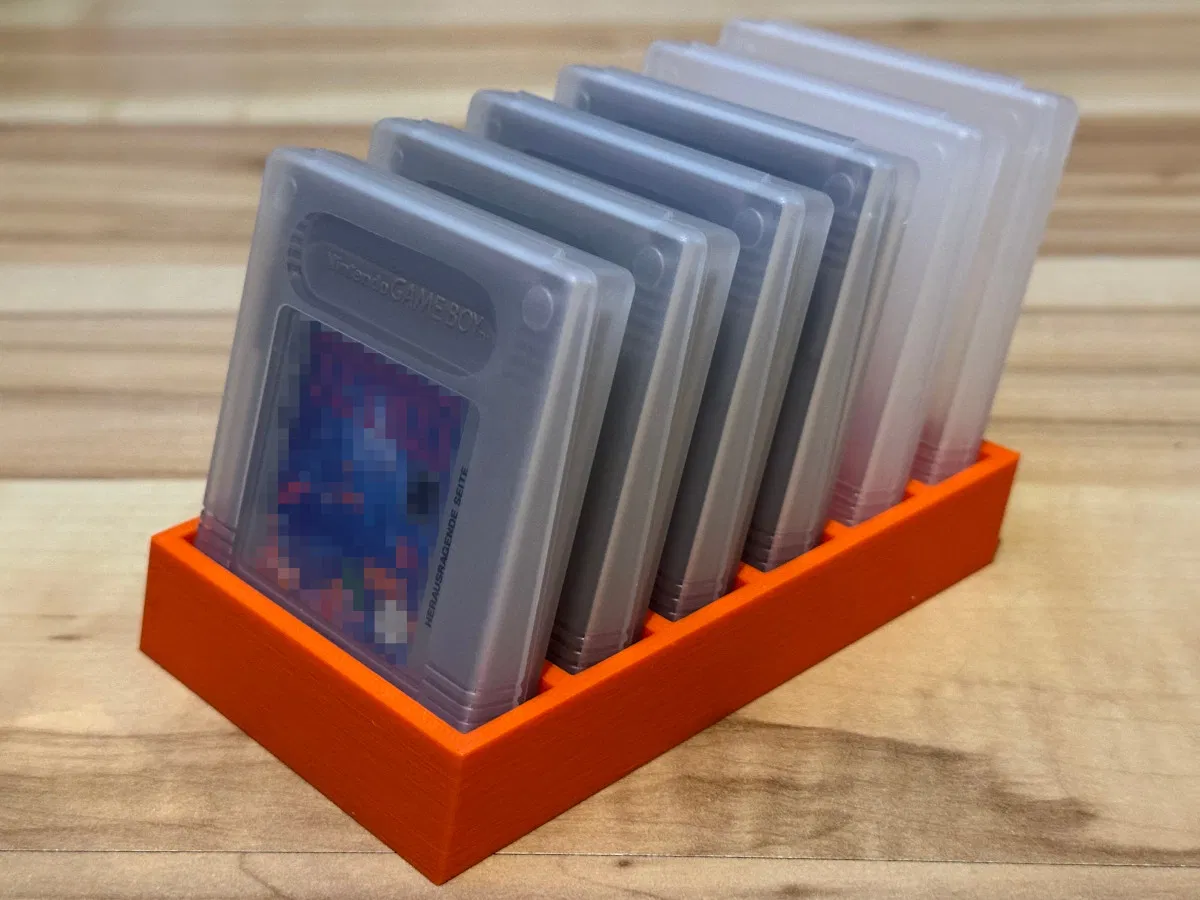 Mẫu đế 3D này dùng để đựng băng game Game Boy® cũ, luôn cả vỏ bọc bên ngoài. Thiết kế thông minh, giữ băng game an toàn, có 2 phiên bản 6 và 10 khe. In bằng PLA không cần support, tốc độ nhanh.