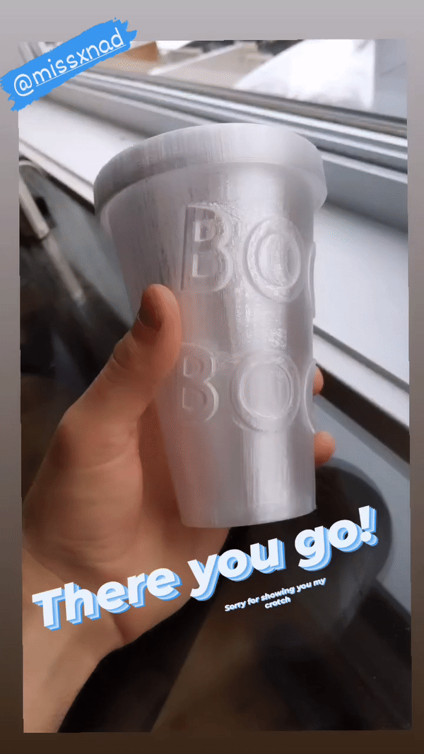 Ly có thành dày, bạn có thể tùy chỉnh mật độ in (infill) để cách nhiệt tốt hơn. Kèm theo đó là nắp đậy tiện dụng. Lý tưởng cho việc giữ lạnh đồ uống. Nhớ đảm bảo bản in không bị hở nhé!