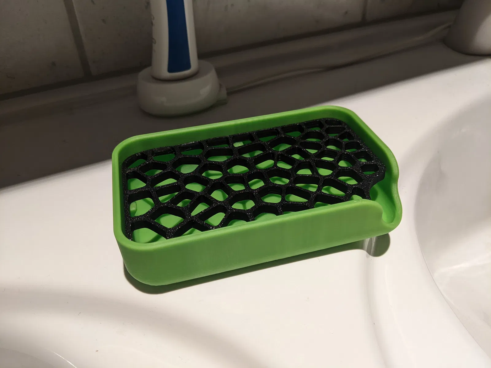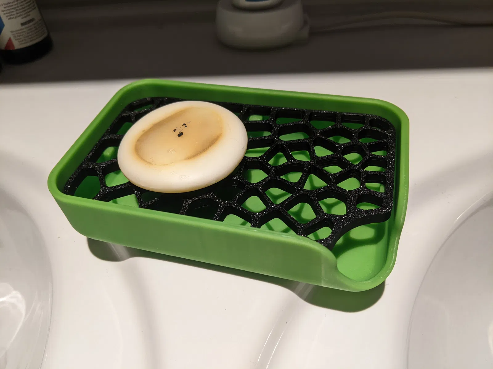 Kệ xà bông 2 mảnh, thiết kế độc đáo theo kiểu Voronoi. Phần khay được tùy chỉnh kích thước để vừa vặn hoàn hảo với hộp đựng. Mặt in lật lên khoe trọn vân đẹp của bàn in.